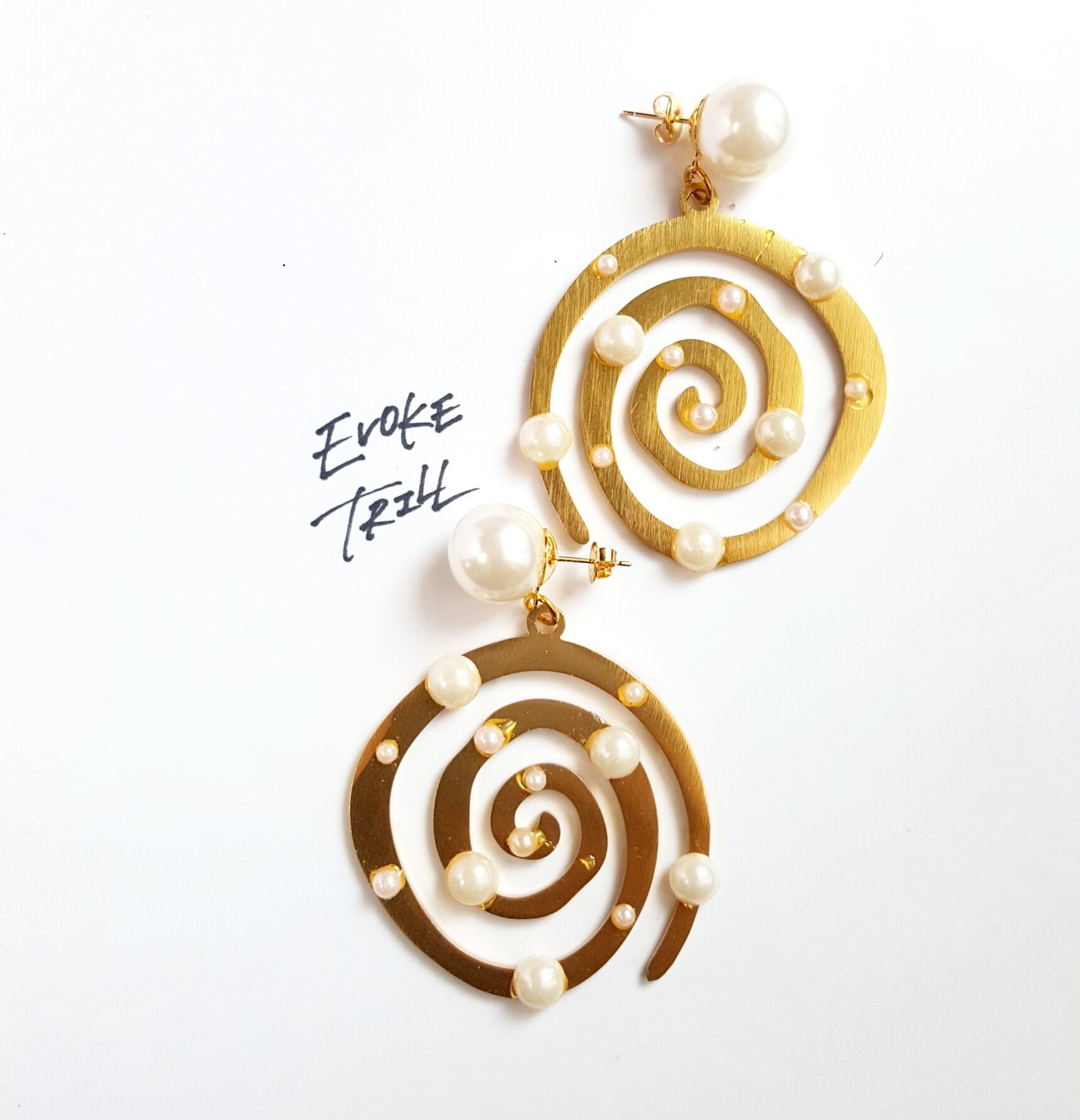 マットゴールドの個性的な形のピアスとなります。