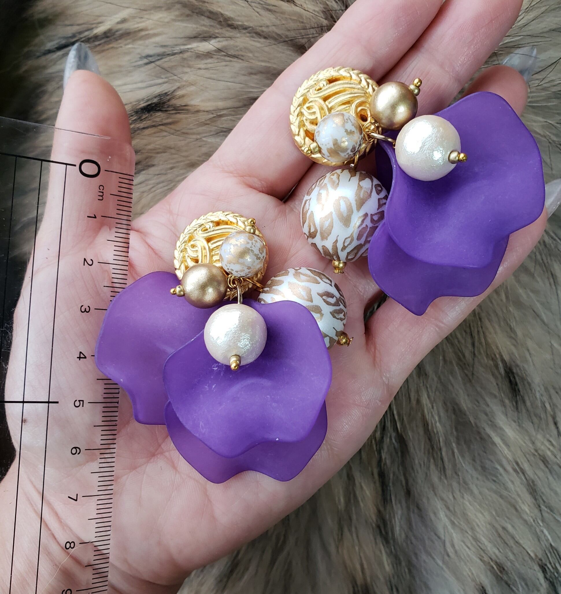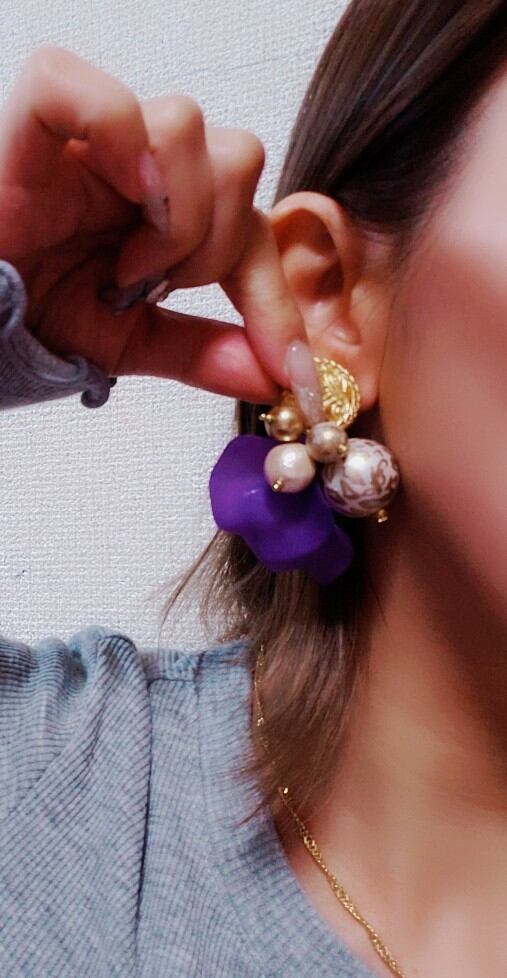 パープルマットなフラワーピアスとなります。