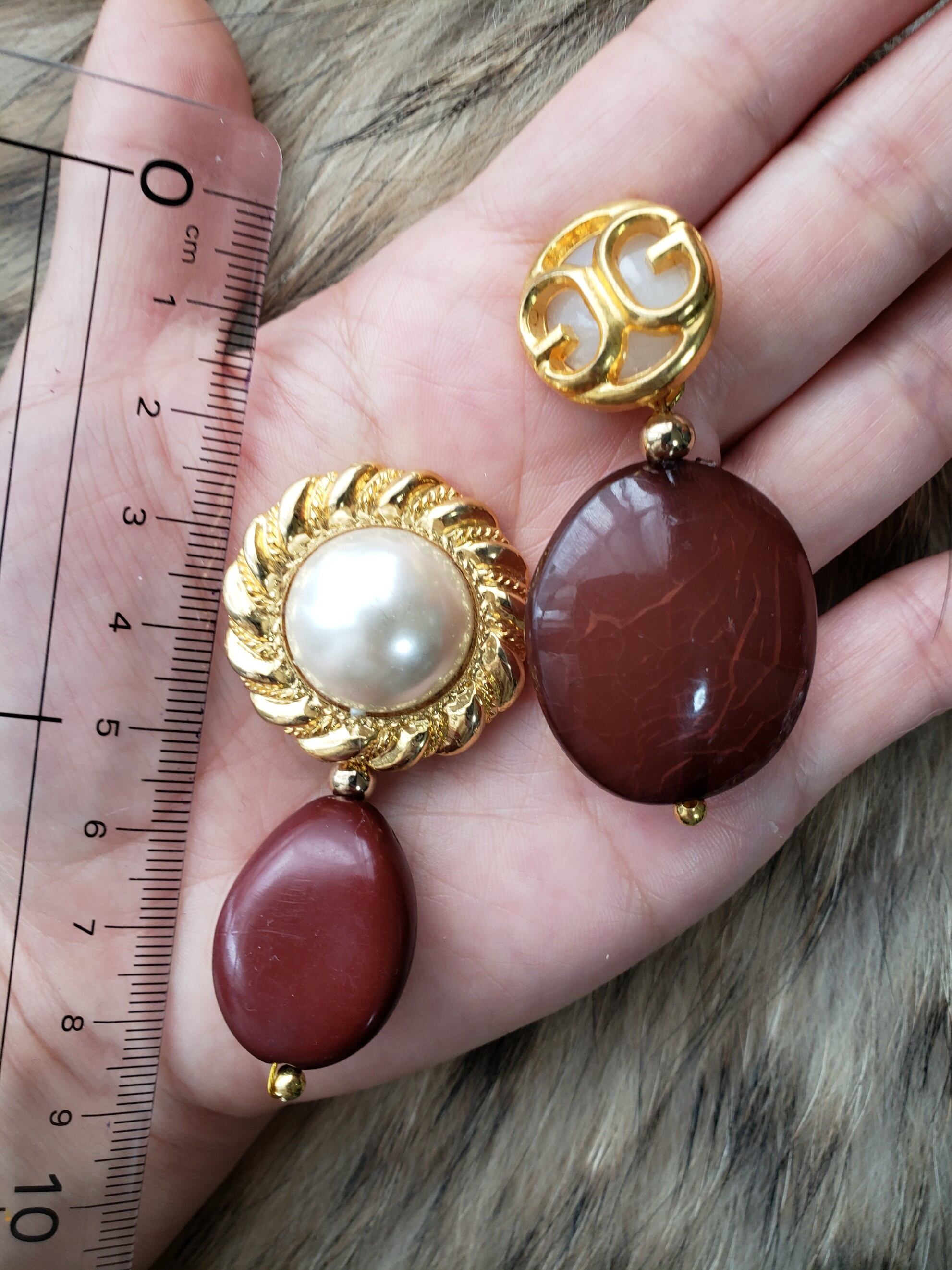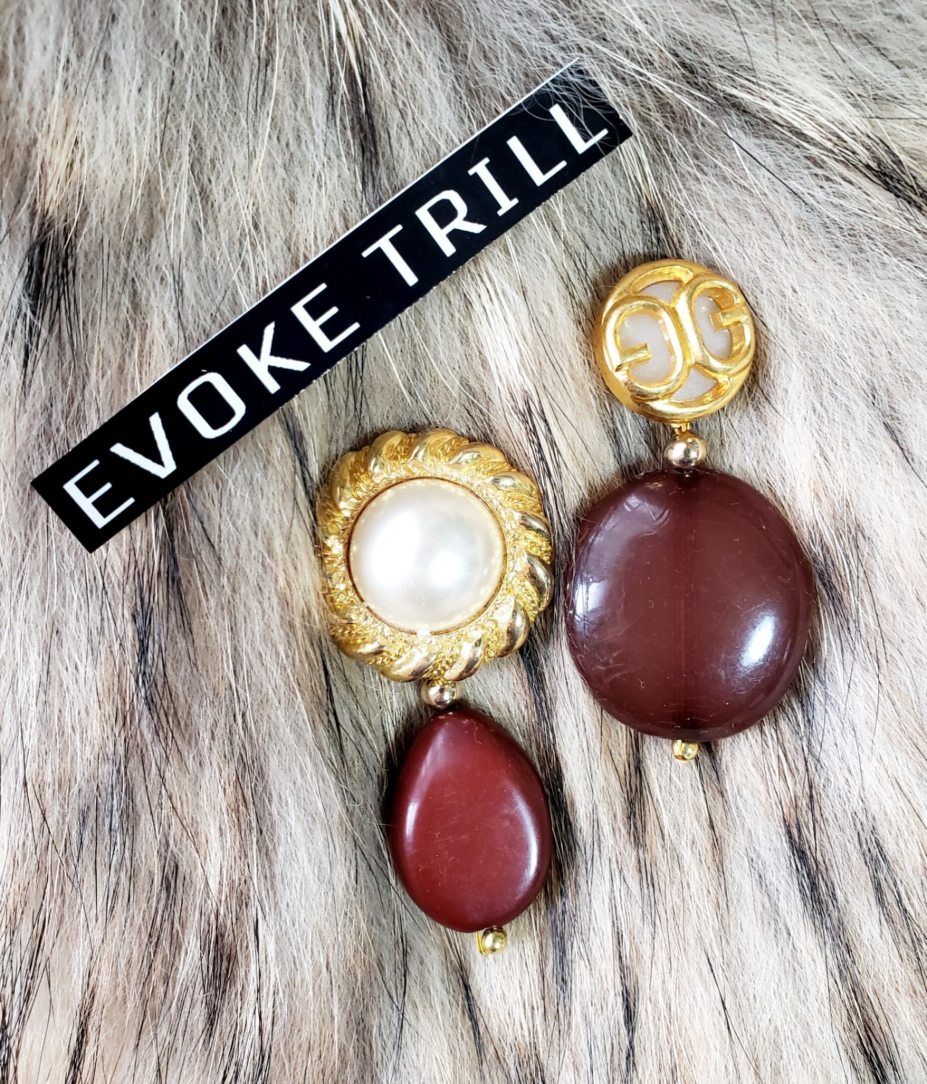 ヴィンテージ アシンメトリー ピアス (brown)