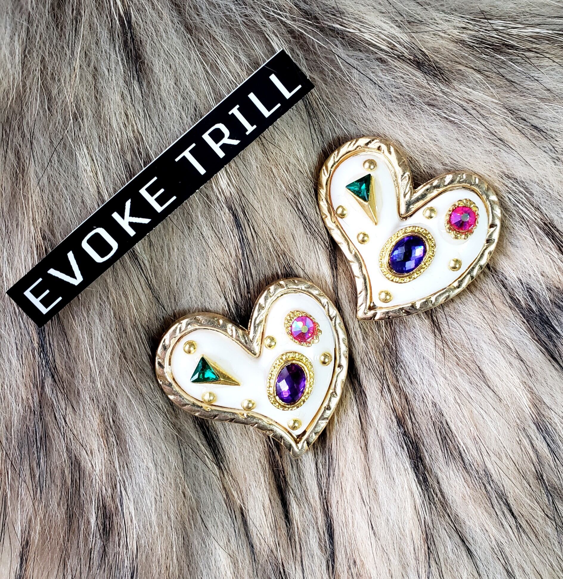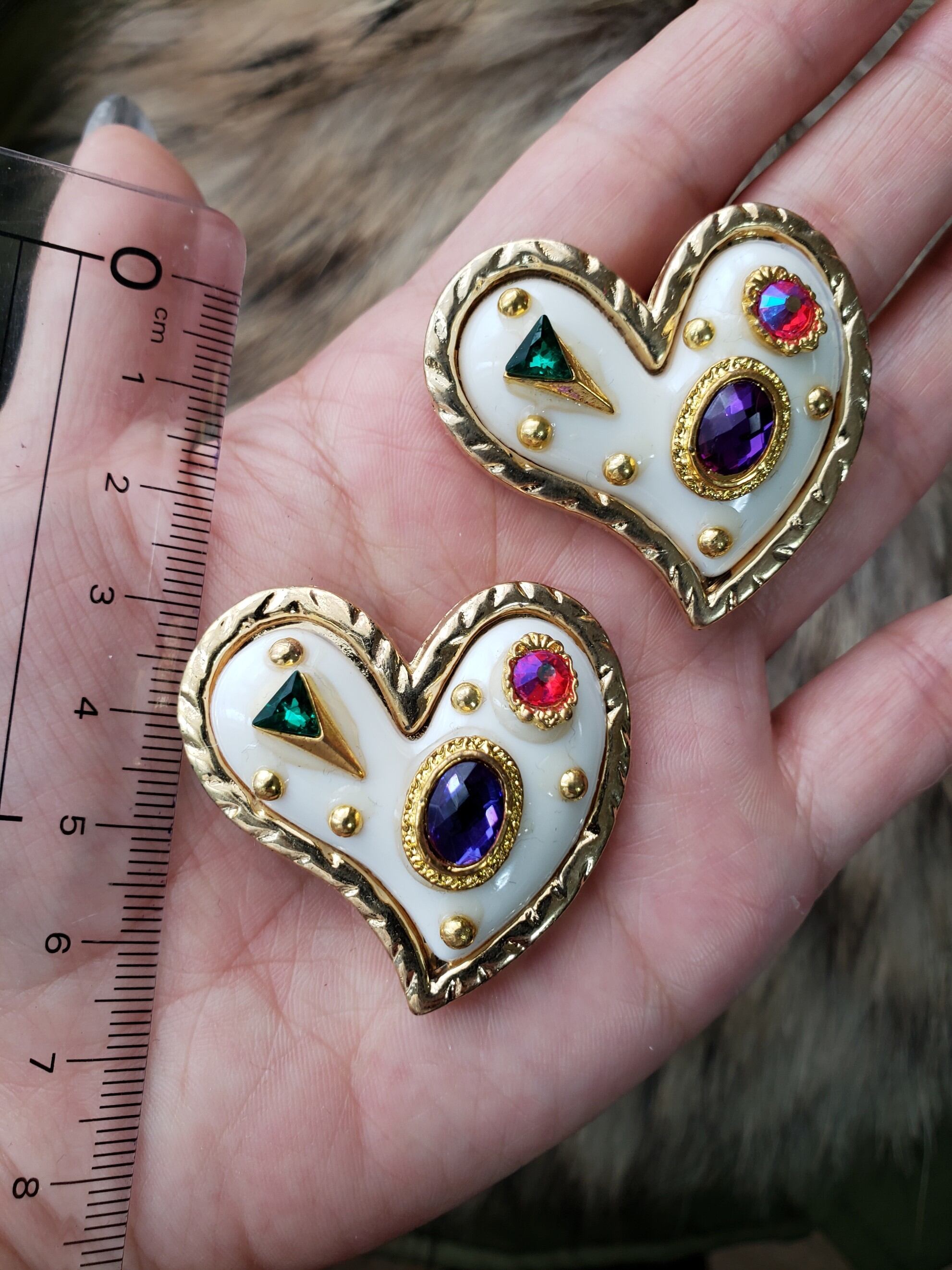 輸入品大ぶりハートのピアスにカラフルなパーツを詰め込みました。