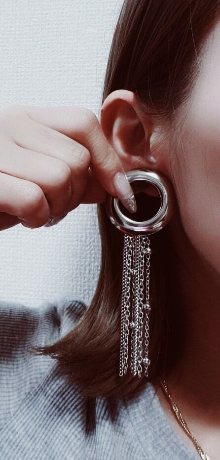 シルバー サークル チェーン ピアス