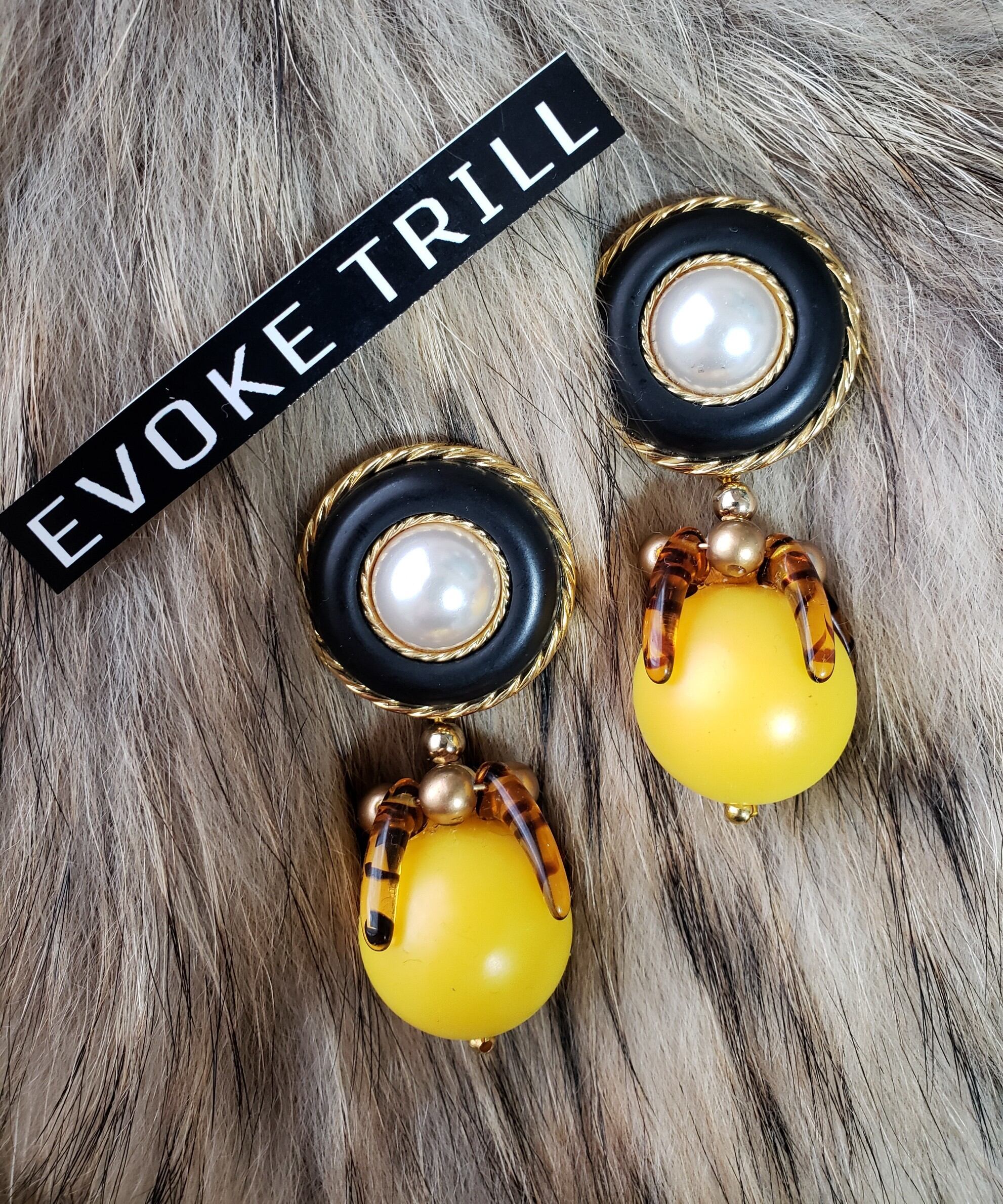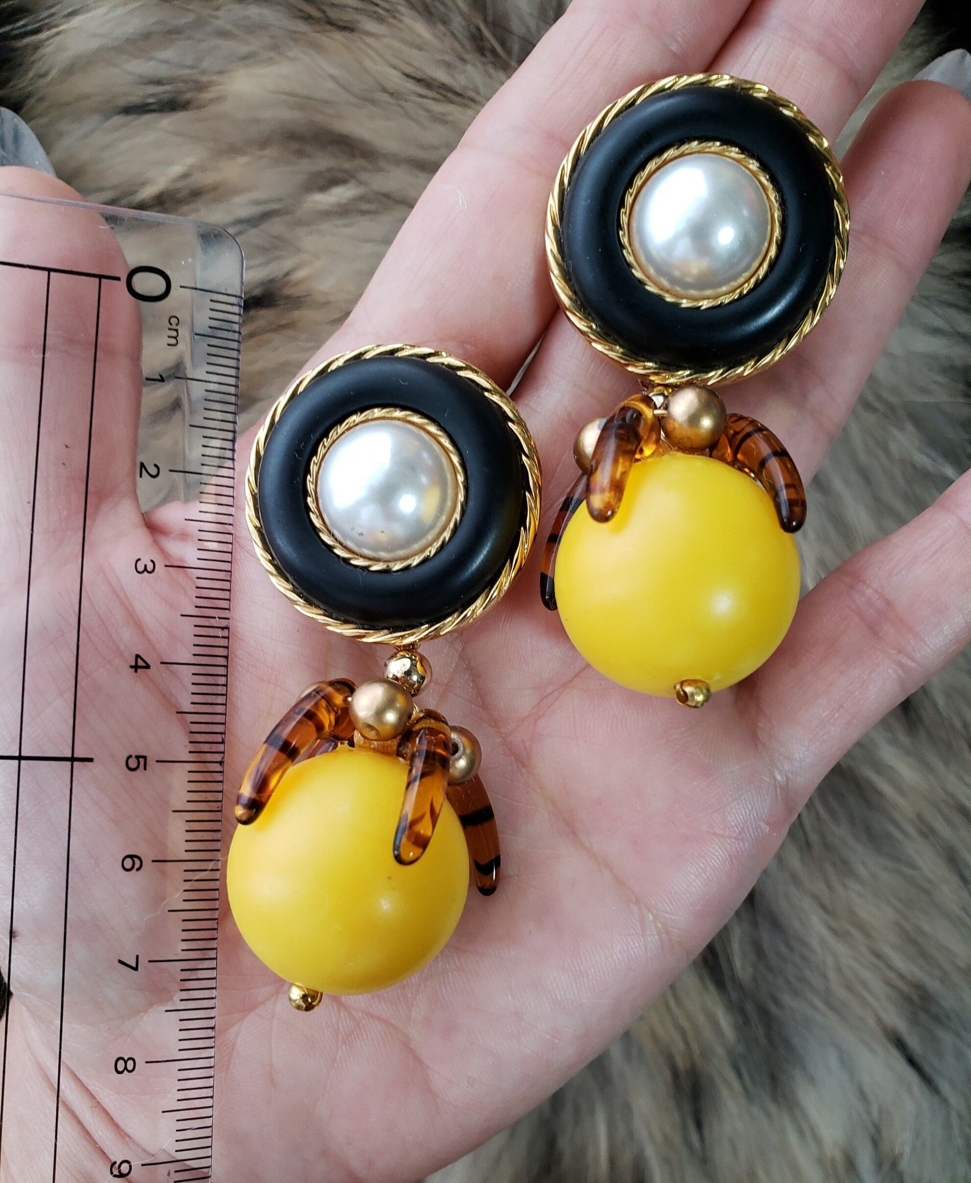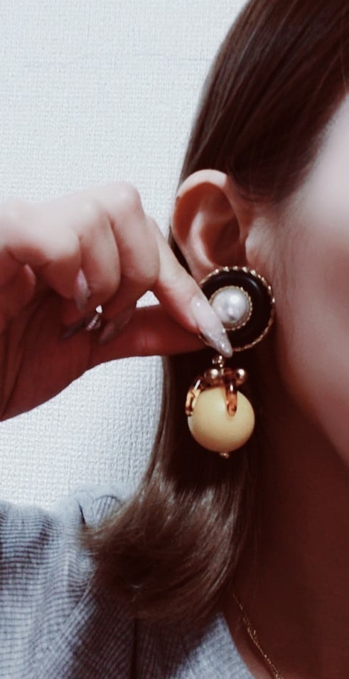 大ぶりピアスでブラック×イエローがオシャレです。