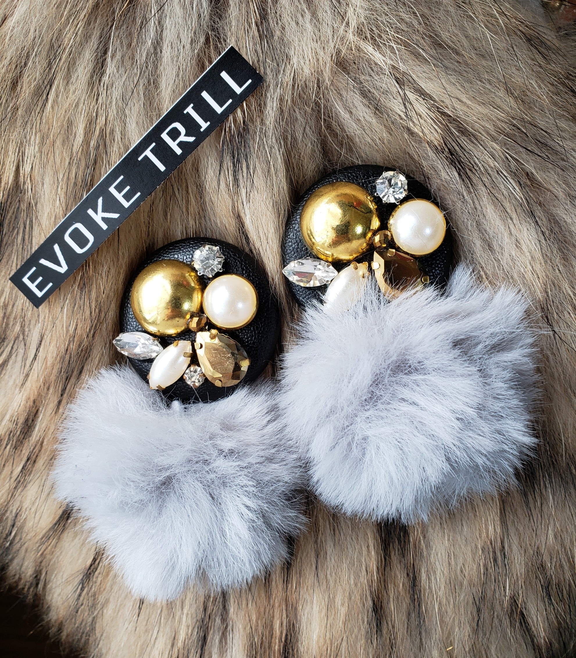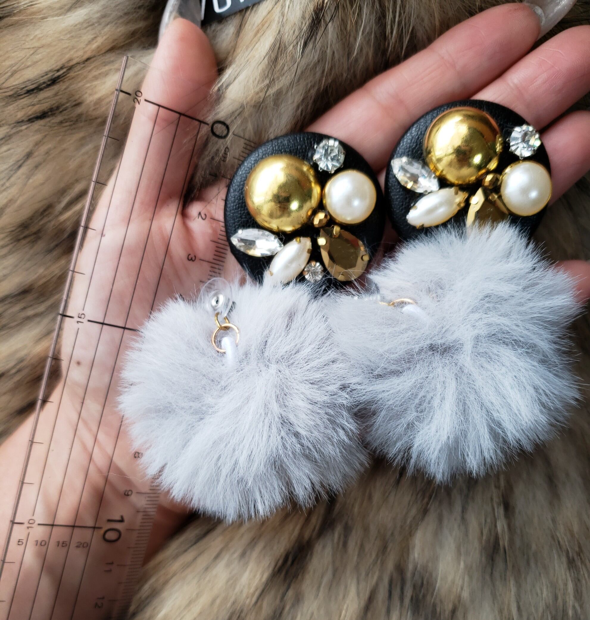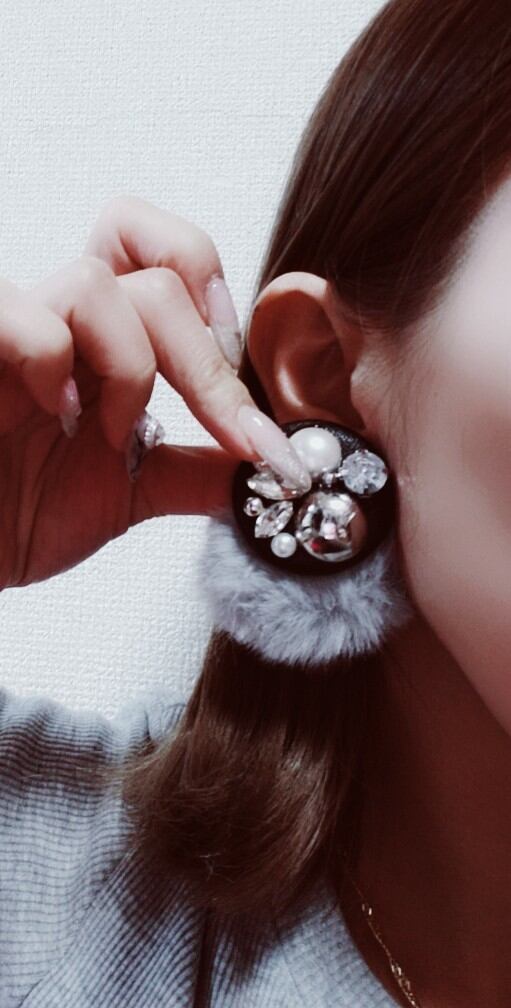 ビジュー BIG ファー ピアス (gold)
