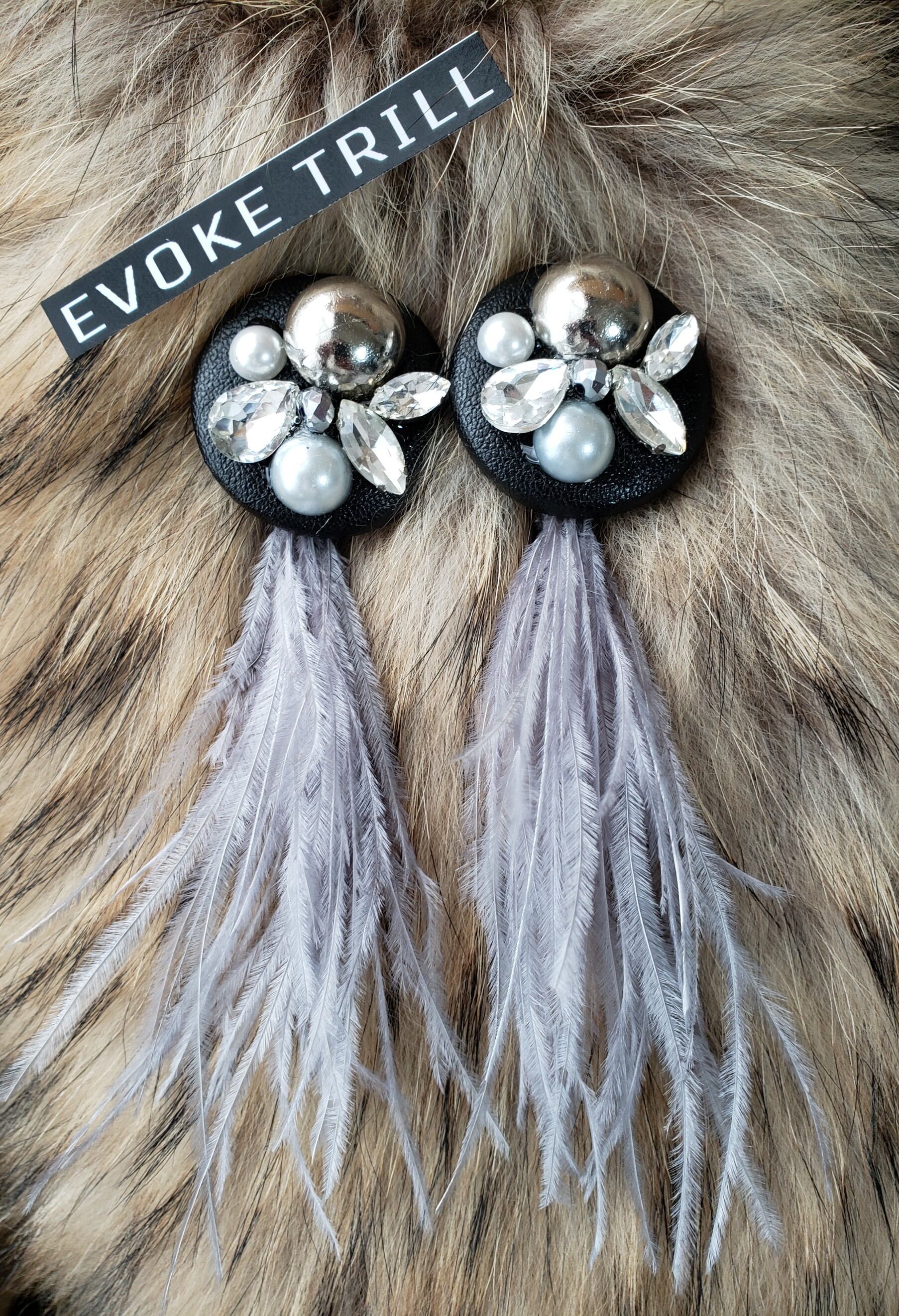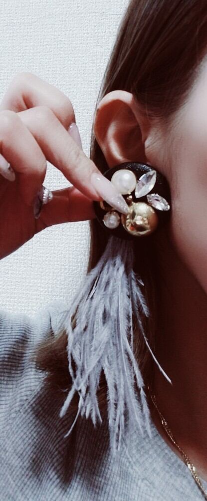 ビジュー BIG ロングファー ピアス (silver )