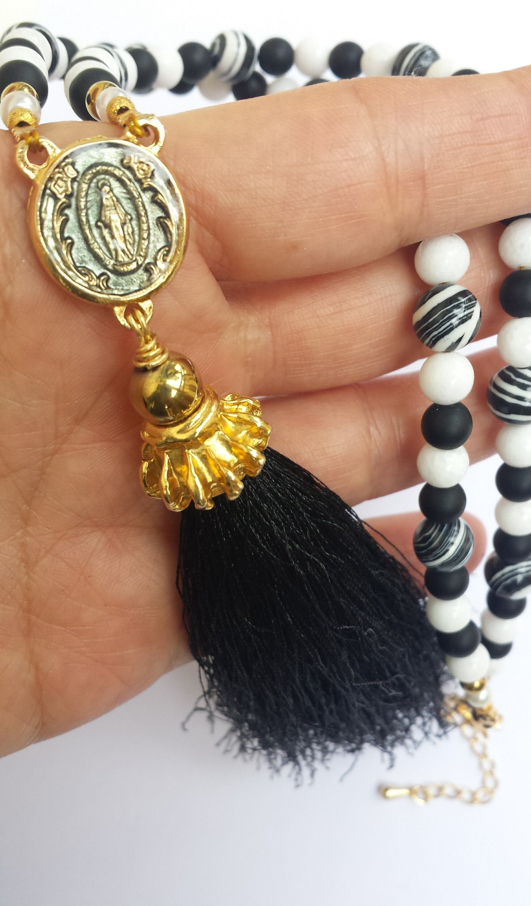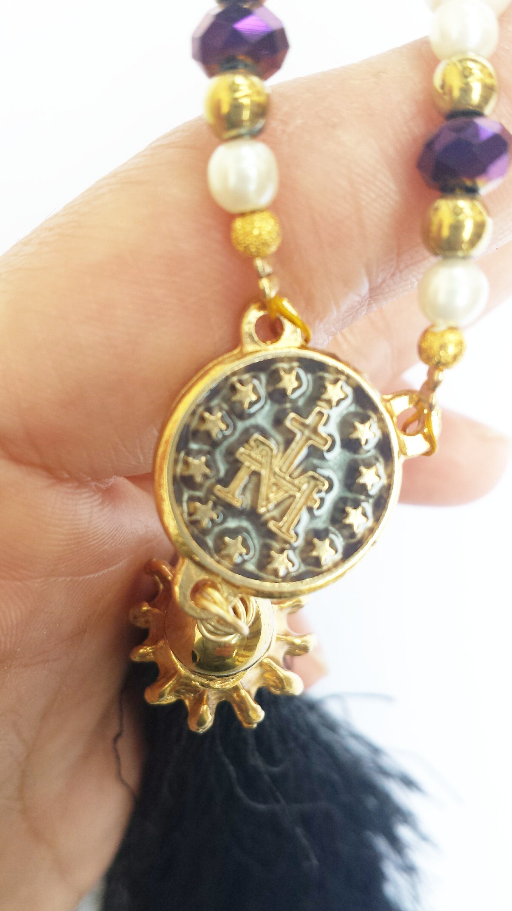 ロザリオに使用される、本物の教会使用のチャームに、ボリュームあるタッセル
