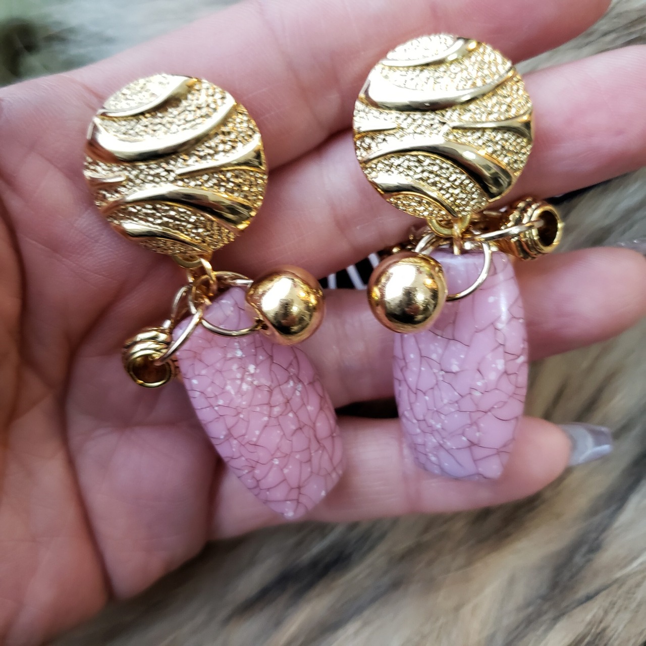 ピンク クラッシュ ゴールド ピアス
