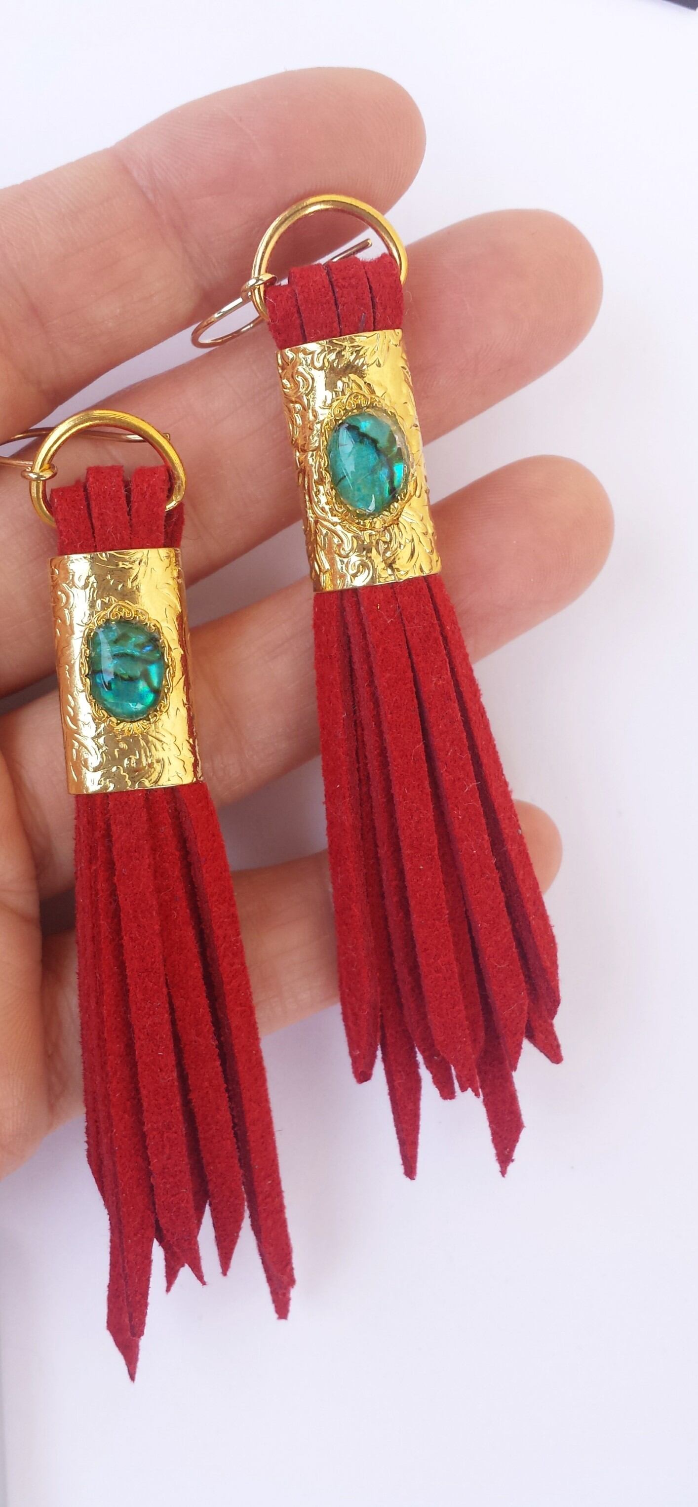 フリンジ ピアス red