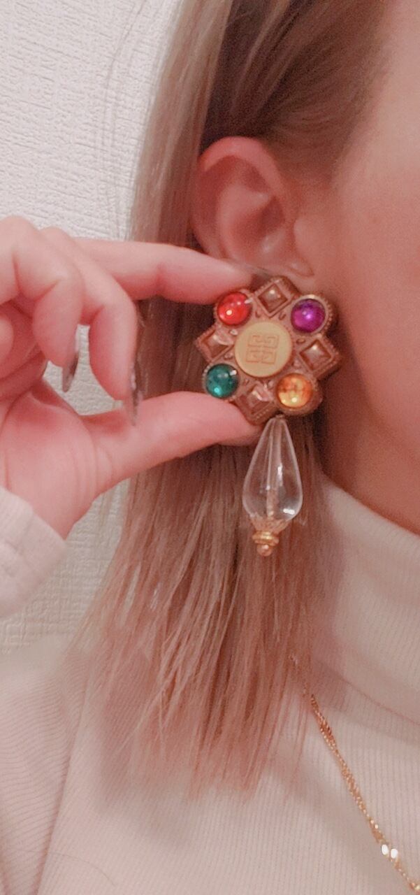 本物USEDブランド品 ジバンシィ ヴィンテージパーツを使ったピアスとなります。