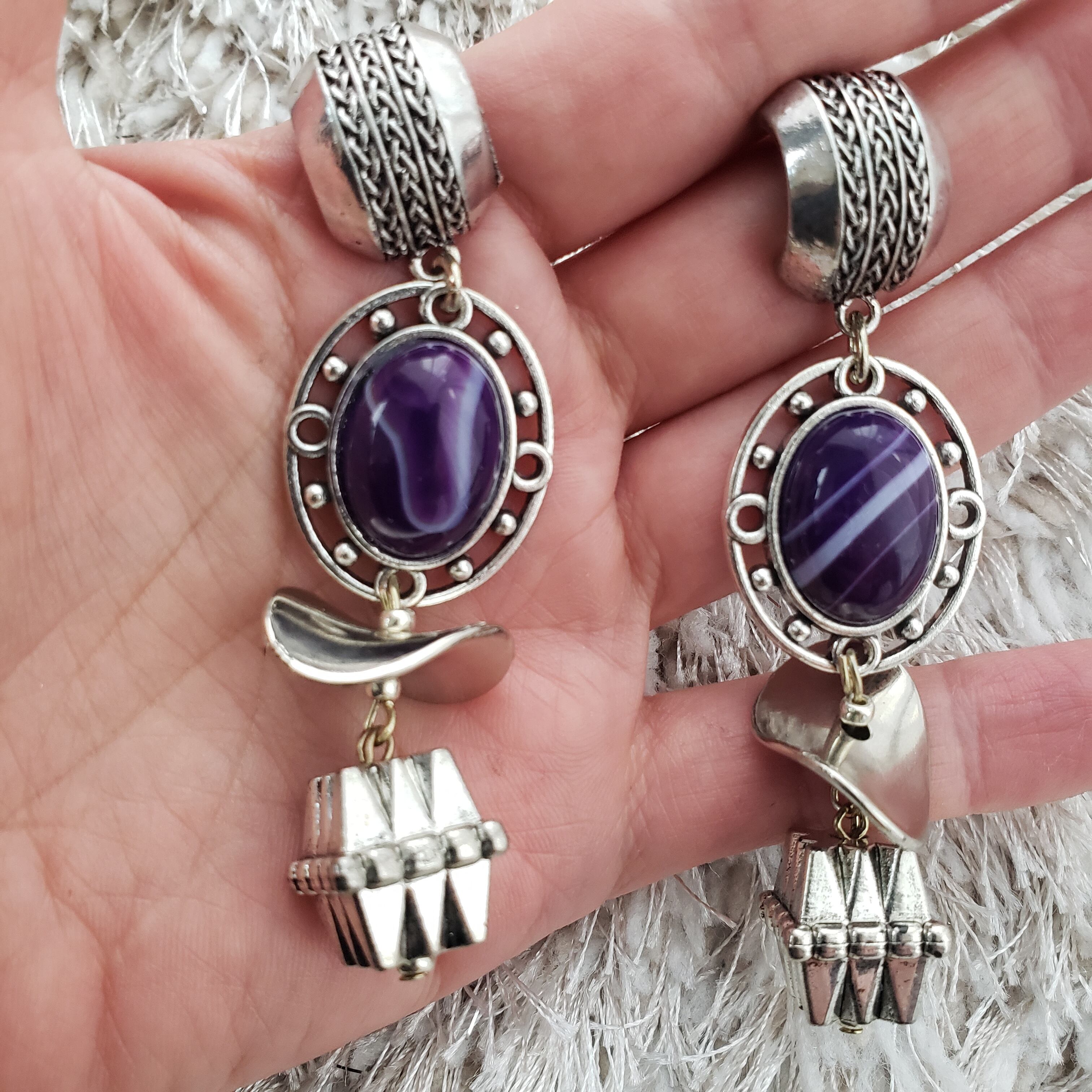 Silver 天然石 パープルアゲイト ピアス