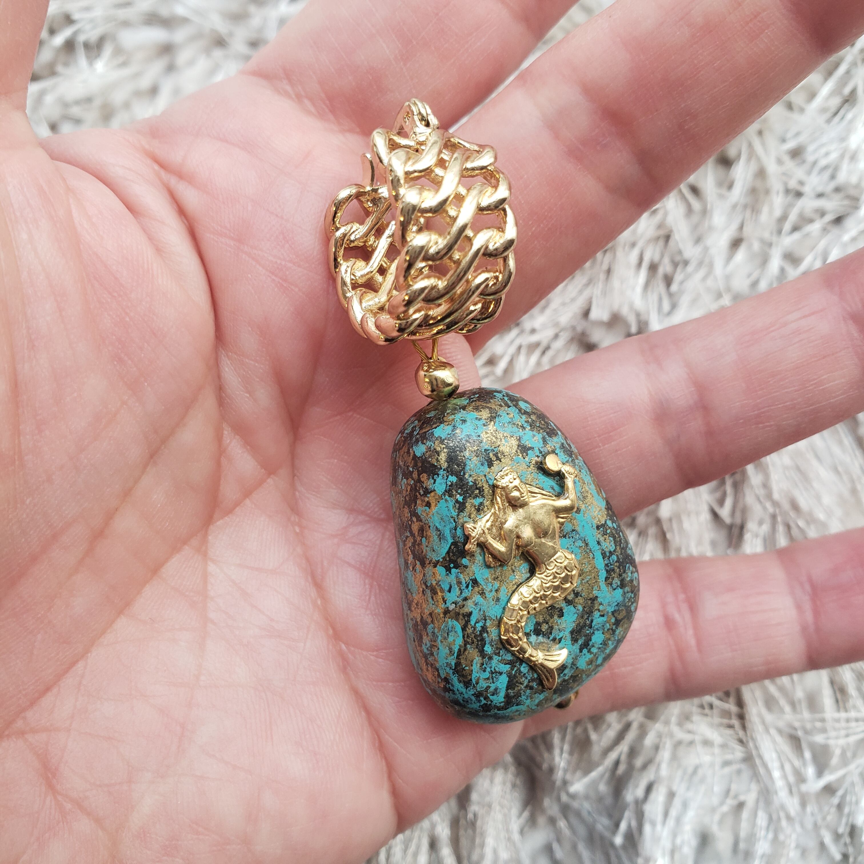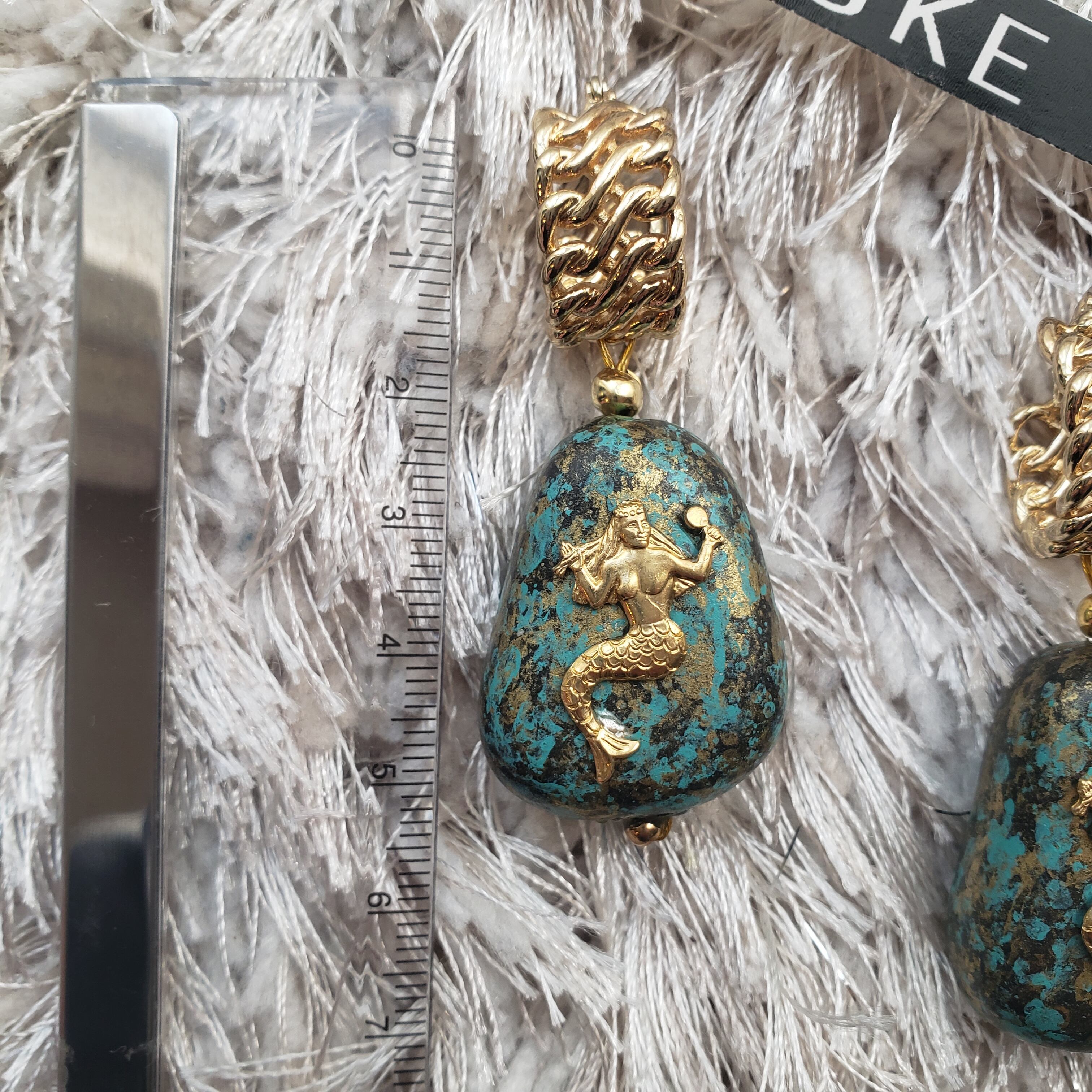 ターコイズ風大きなビーズでコンパクトに仕上げたので使いやすいですね。網目ゴールドリングで存在感あります。
