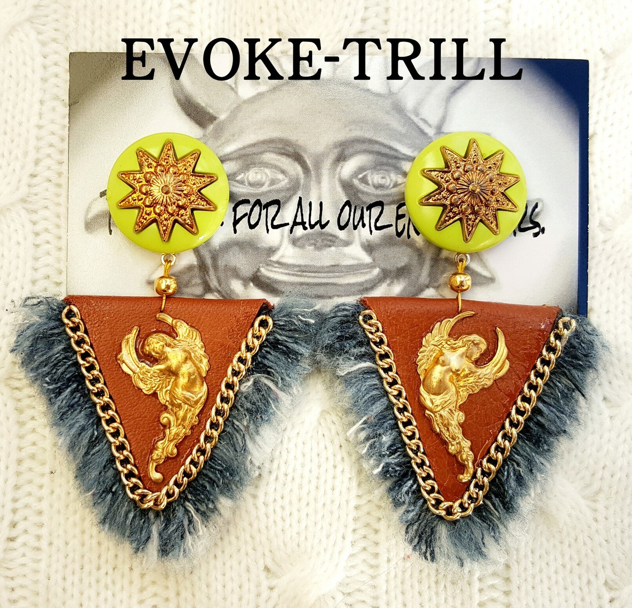ヴィンテージ デニム トライアングル ピアス (lime)
