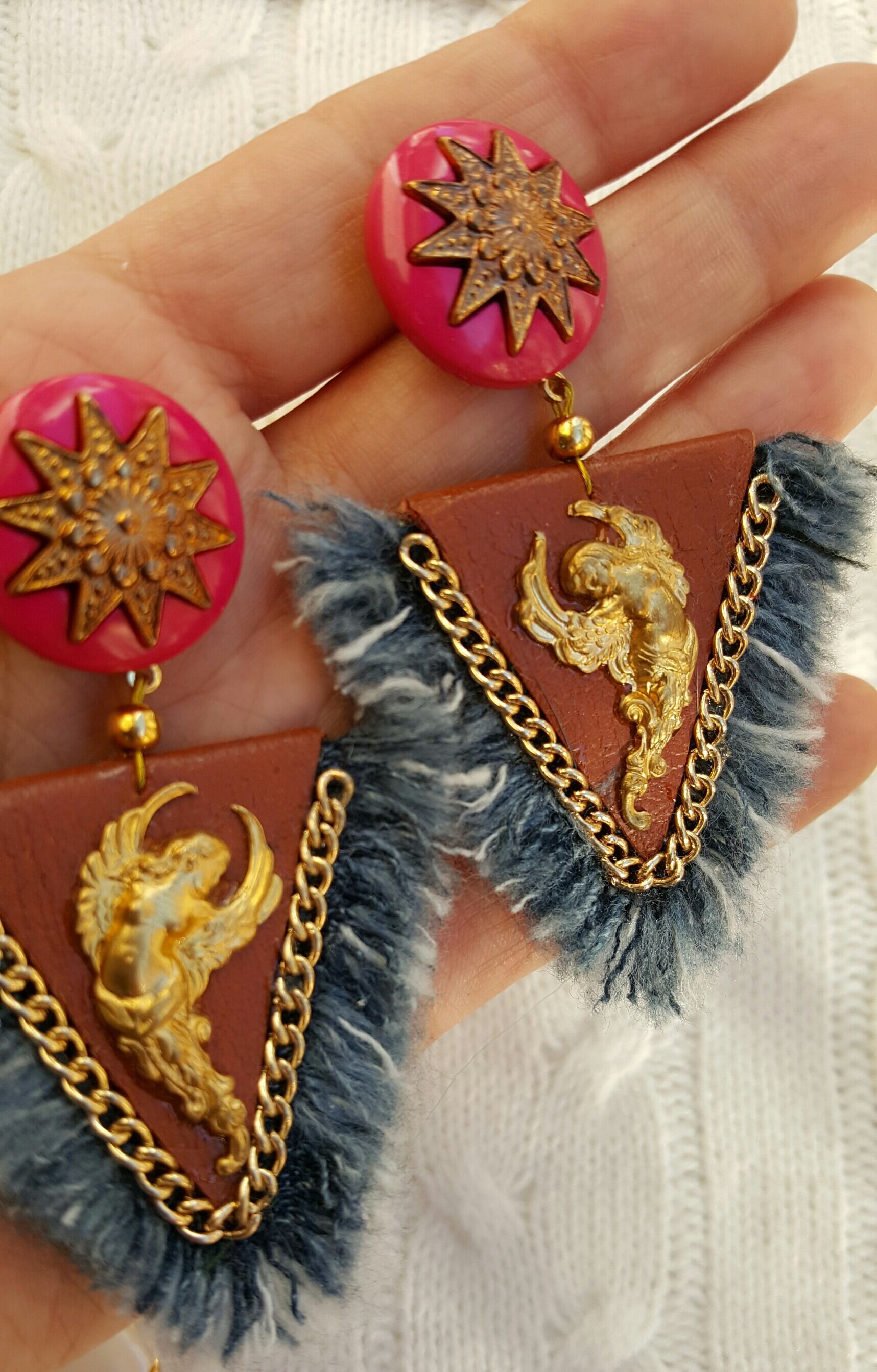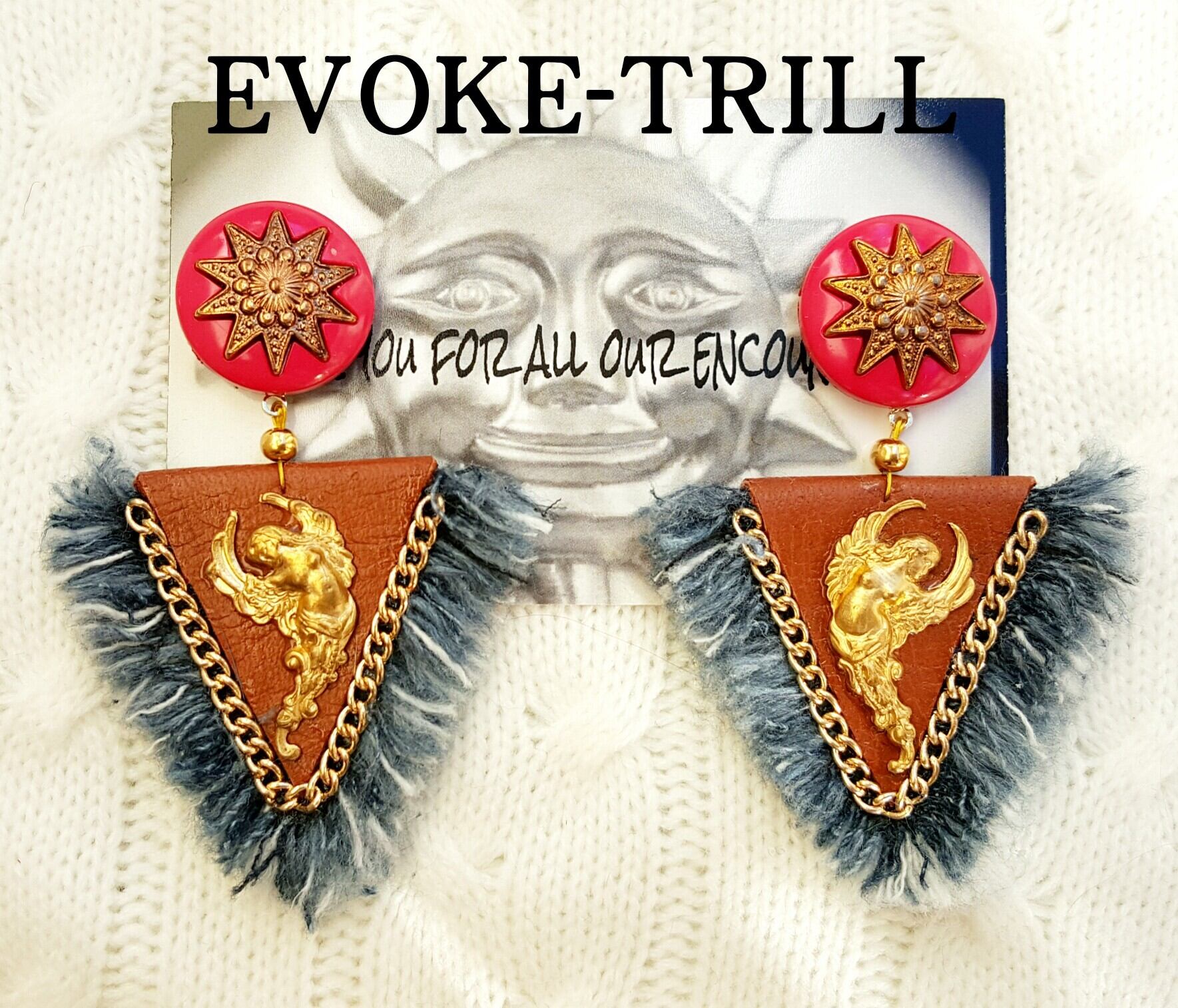 ヴィンテージ デニム トライアングル ピアス (pink)