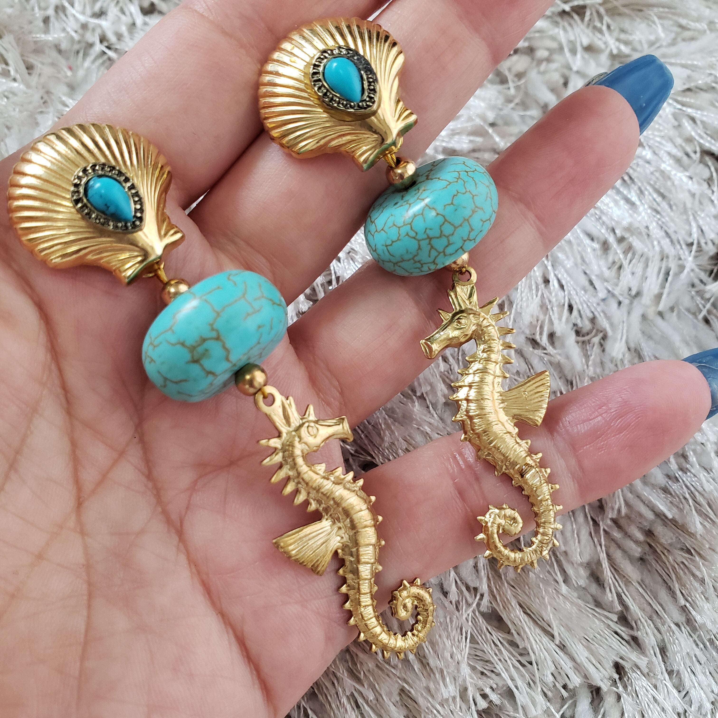 シェル ターコイズ シーホース ピアス