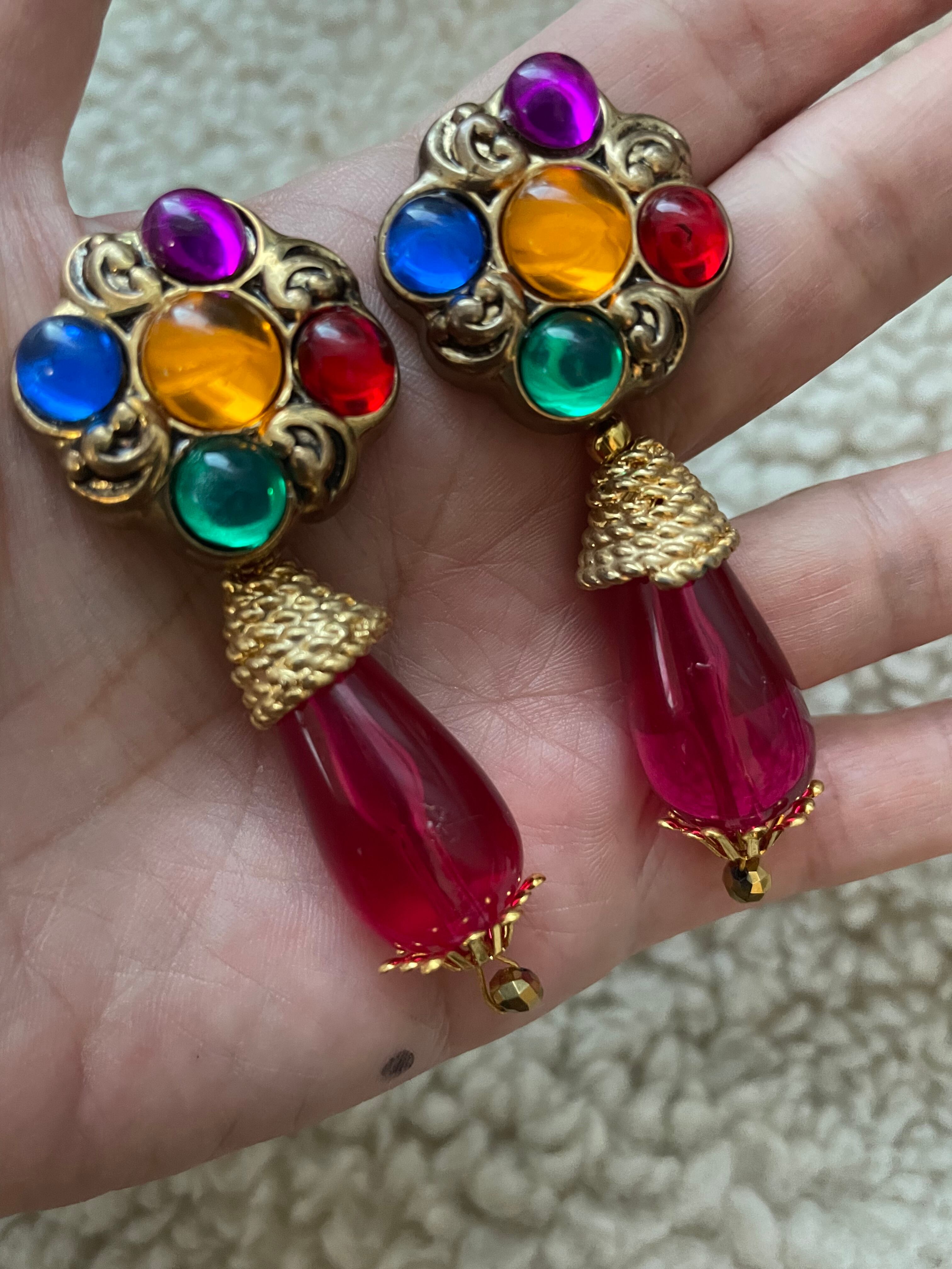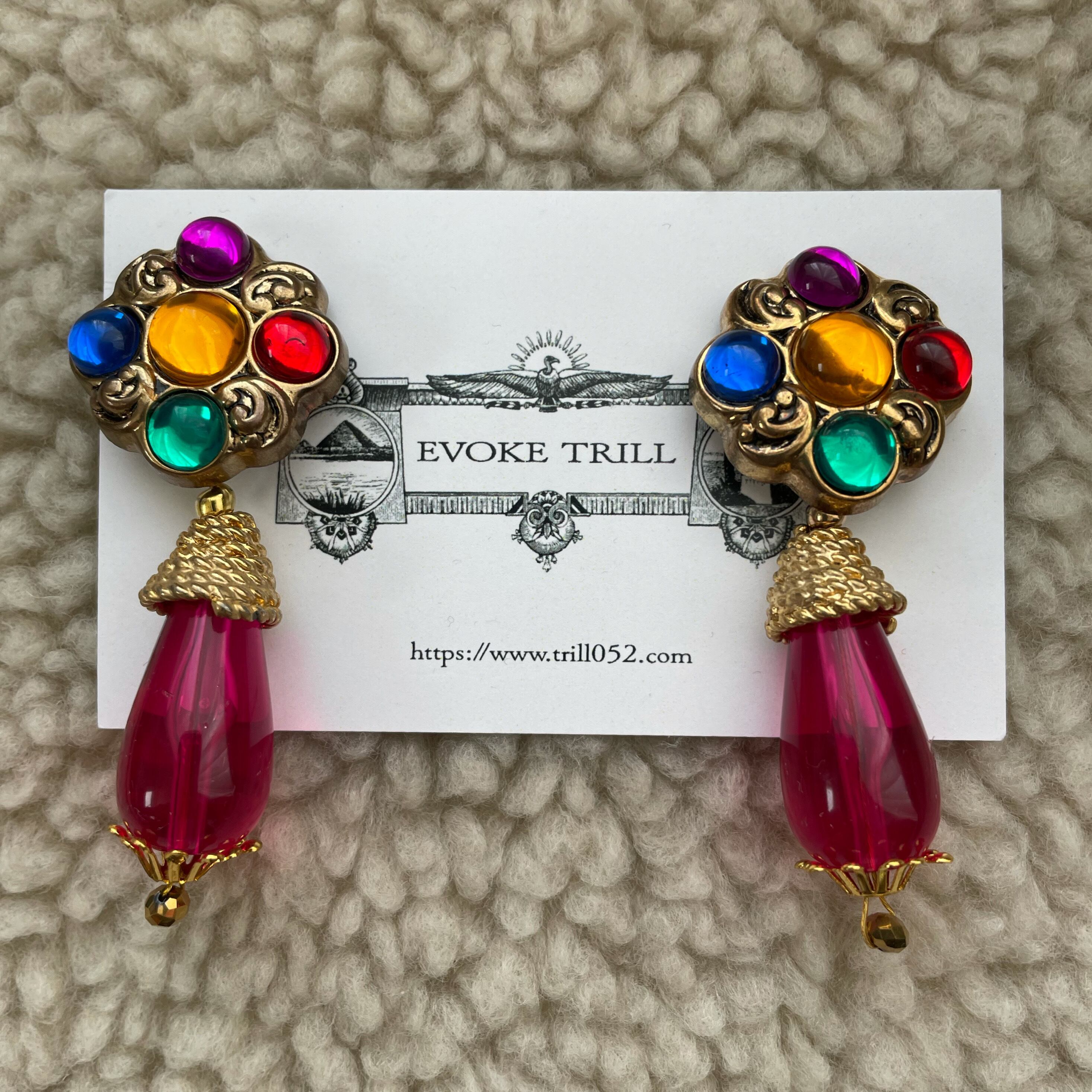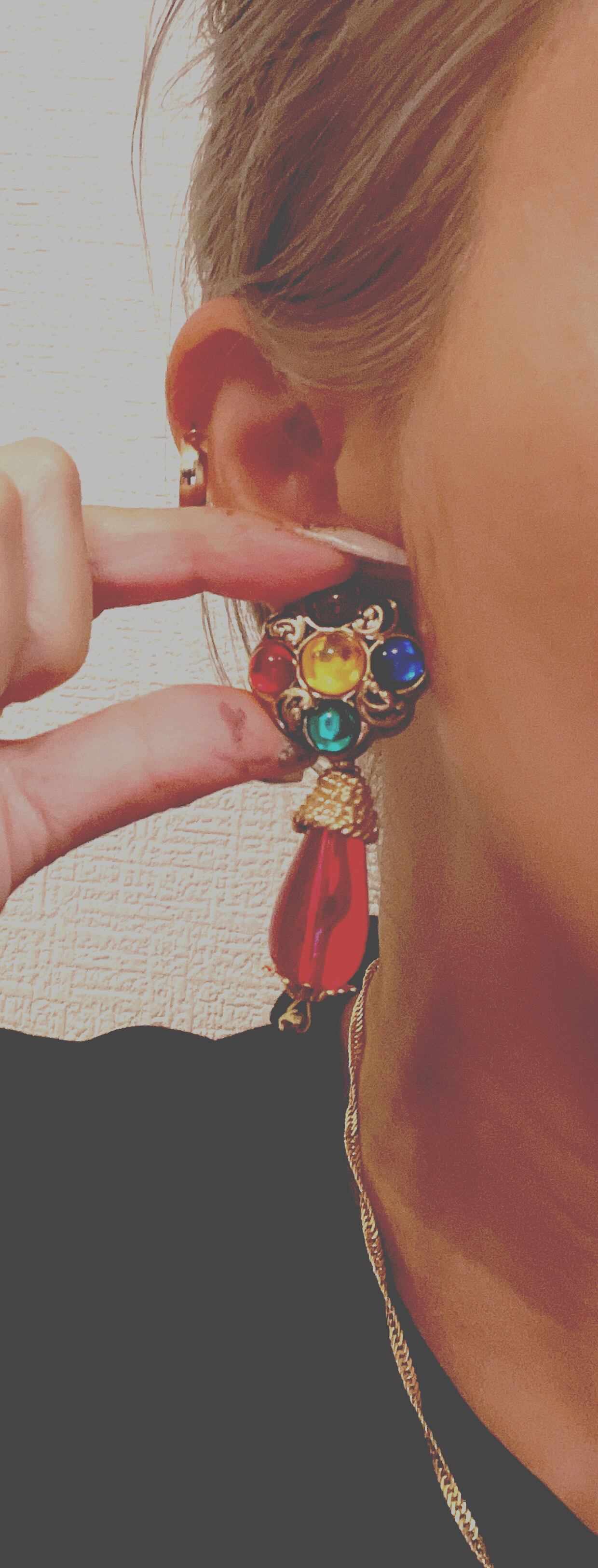 ヴィンテージ カラフル ビジュー ピアス【pink⠀】