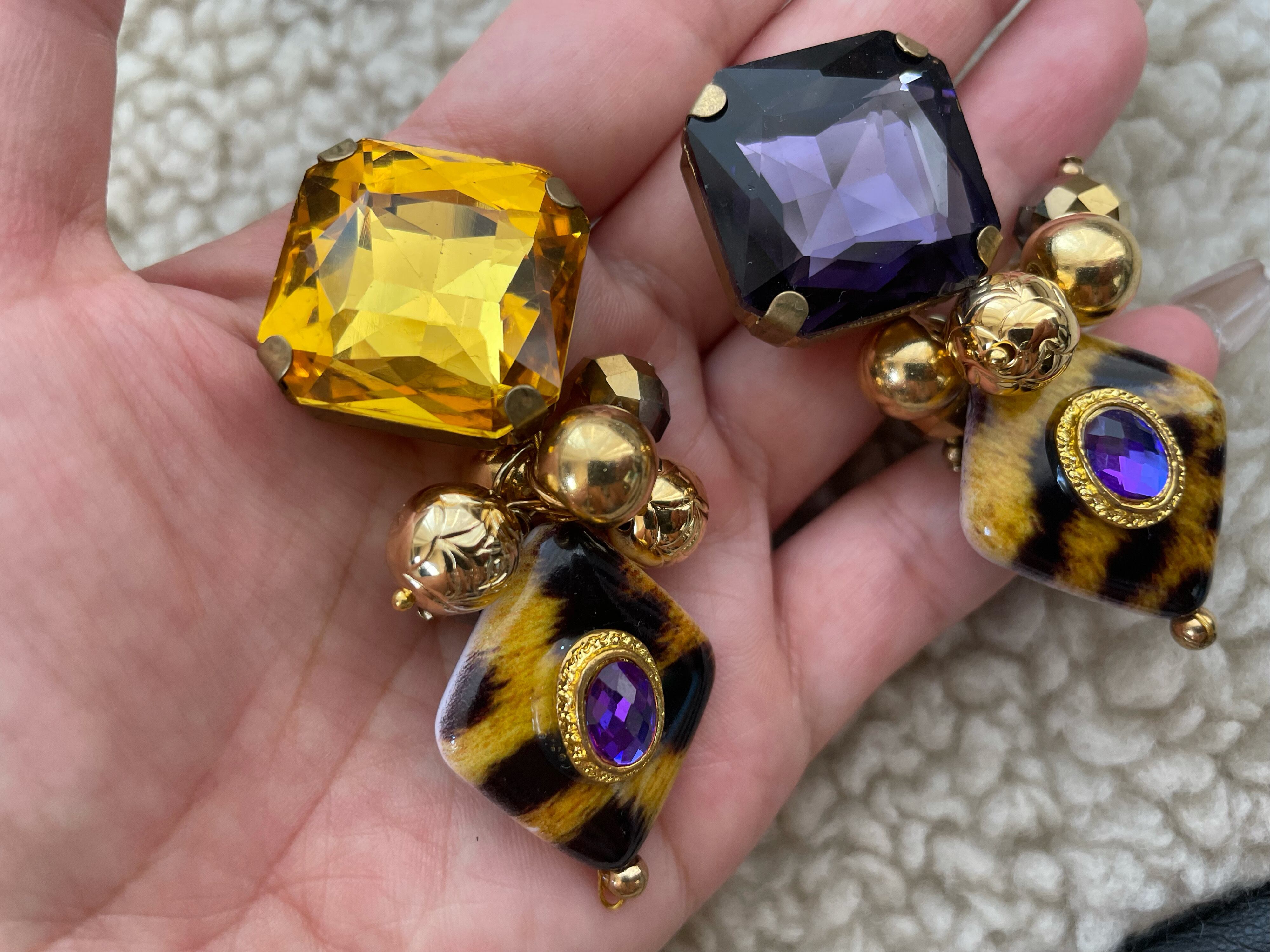 BIG カラフル ビジュー ピアス 【purple×yellow⠀】