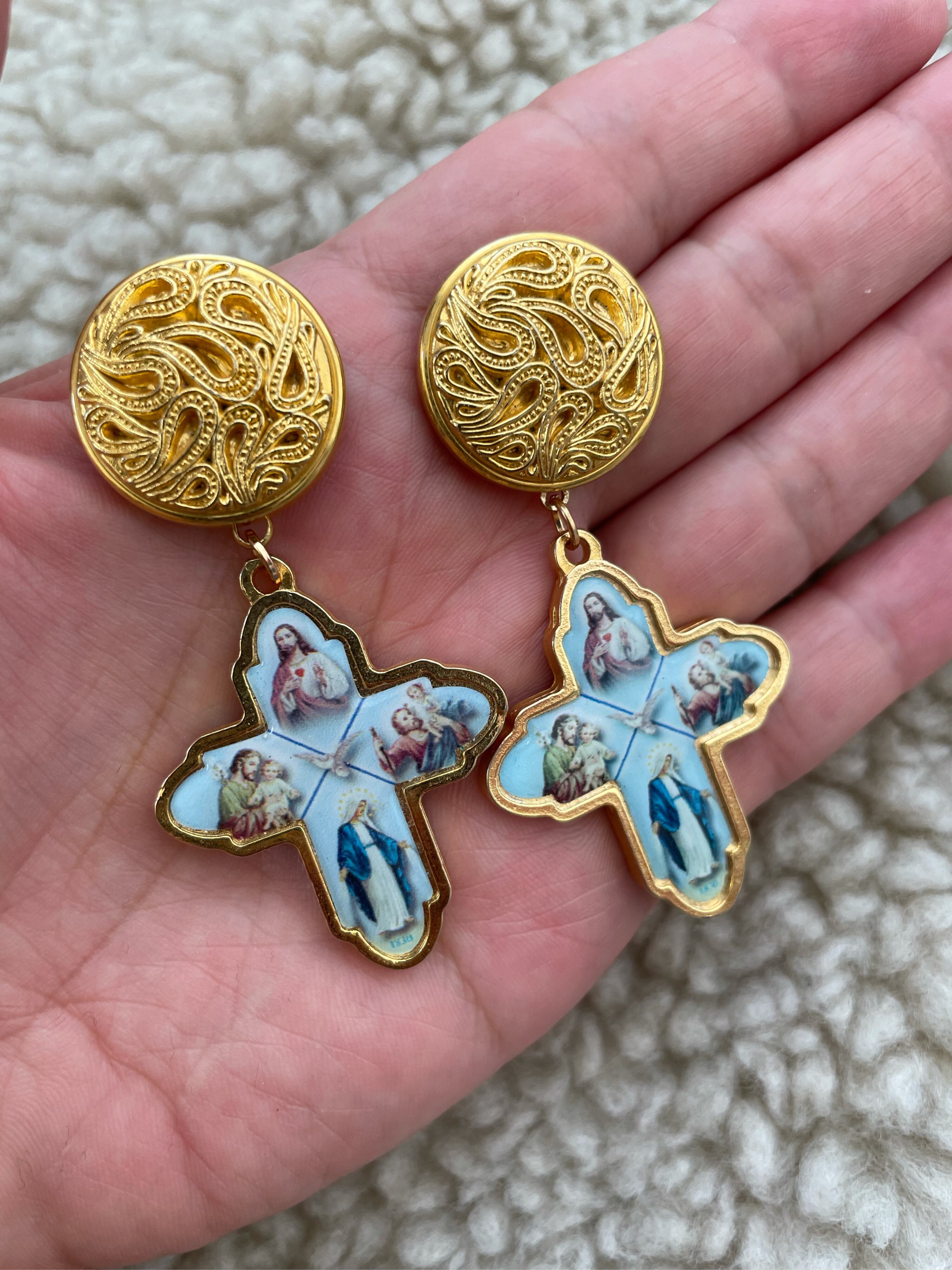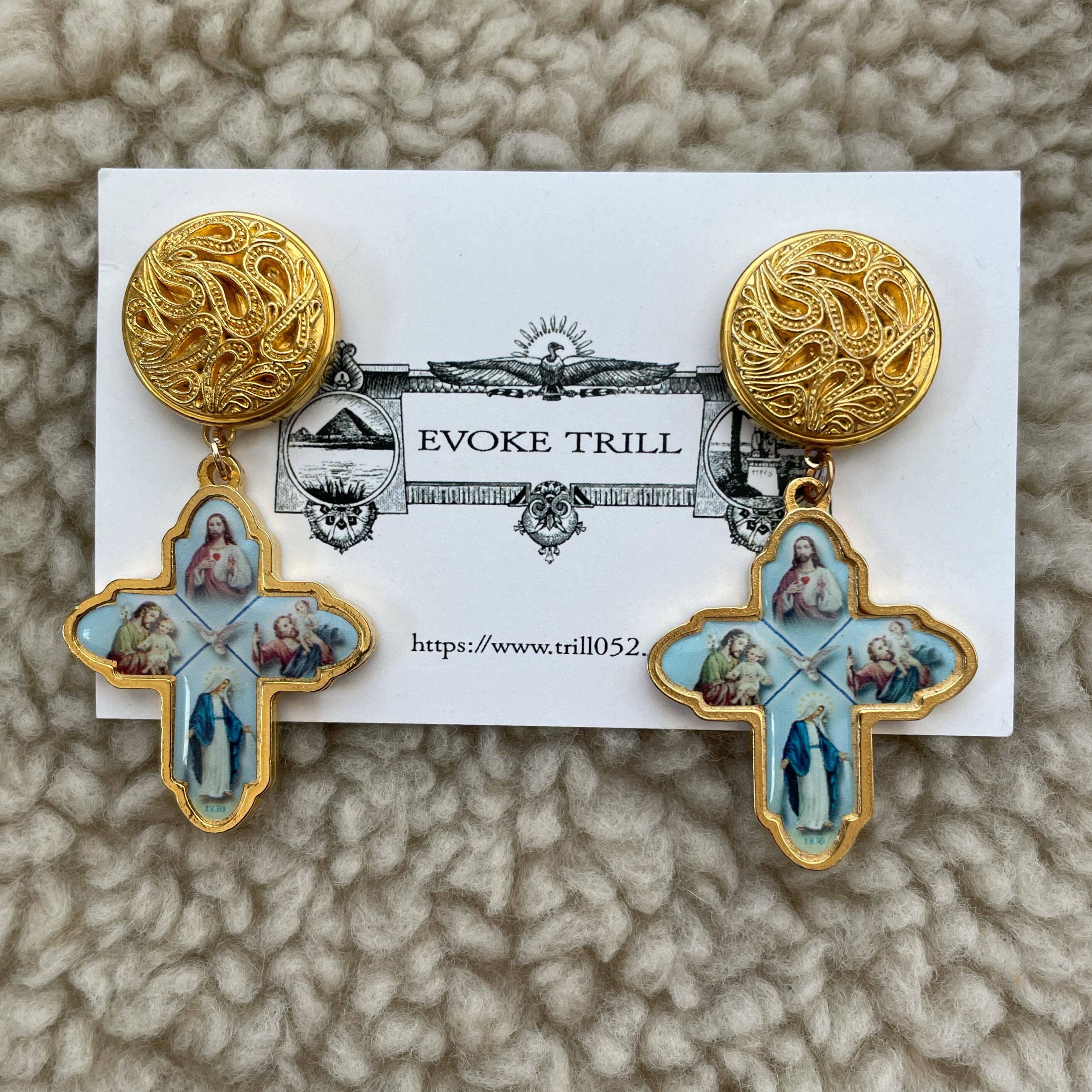 クロス ピアス skyblue