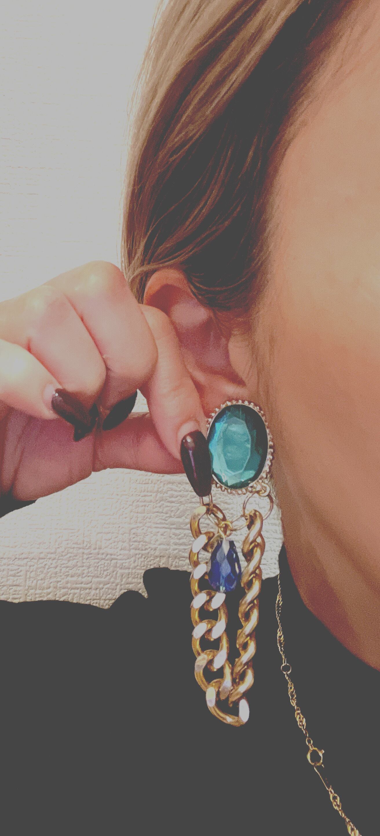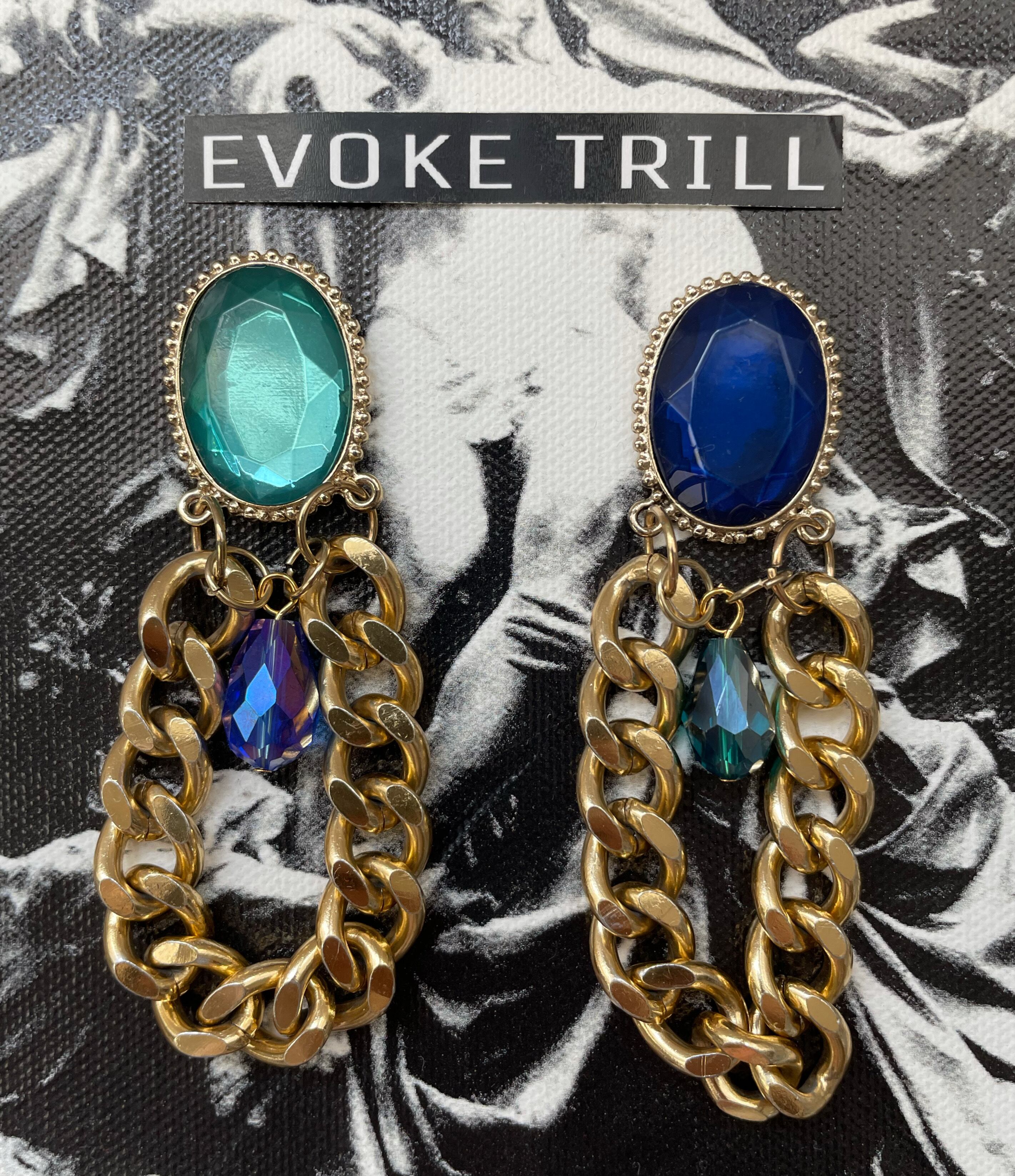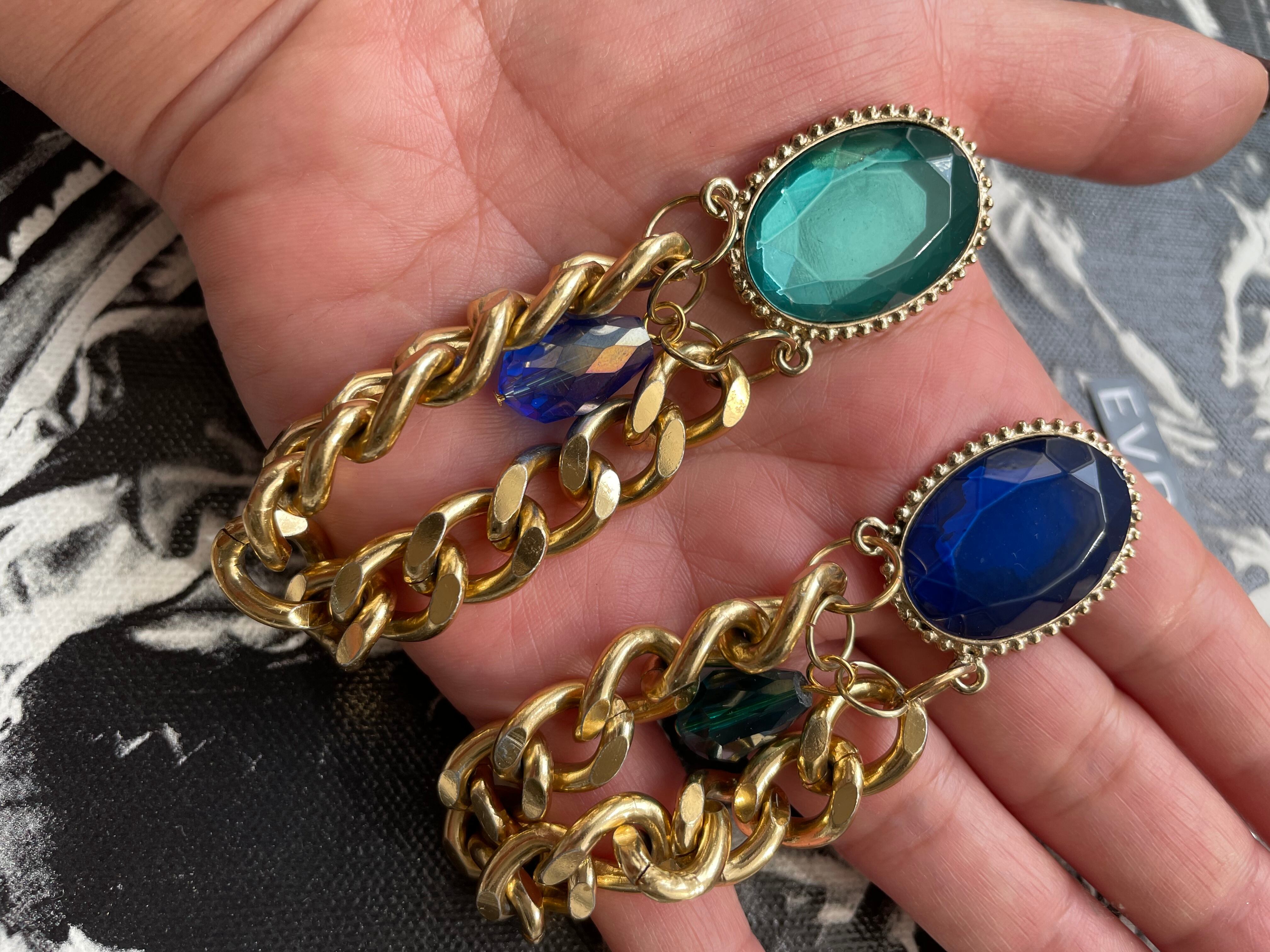 BIG ビジュー チェーン ピアス green系