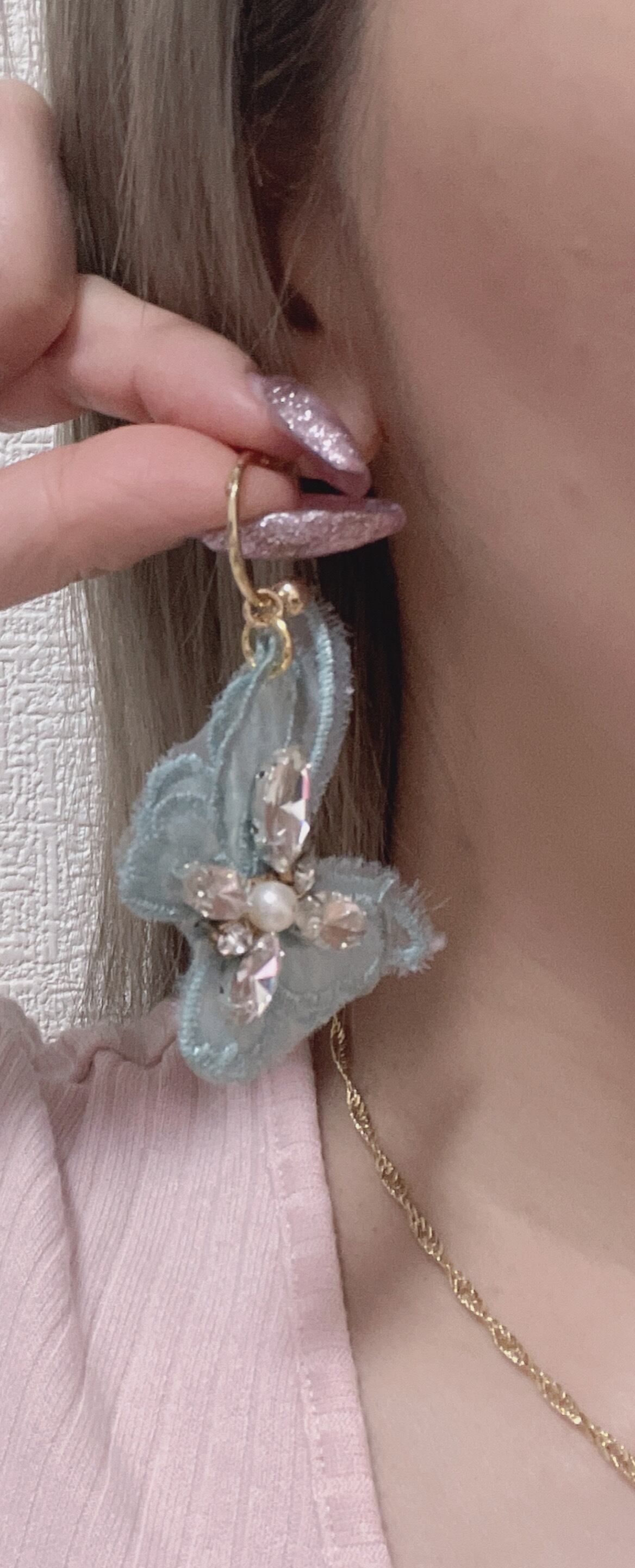 オーガンジー素材の軽めピアスとなります。