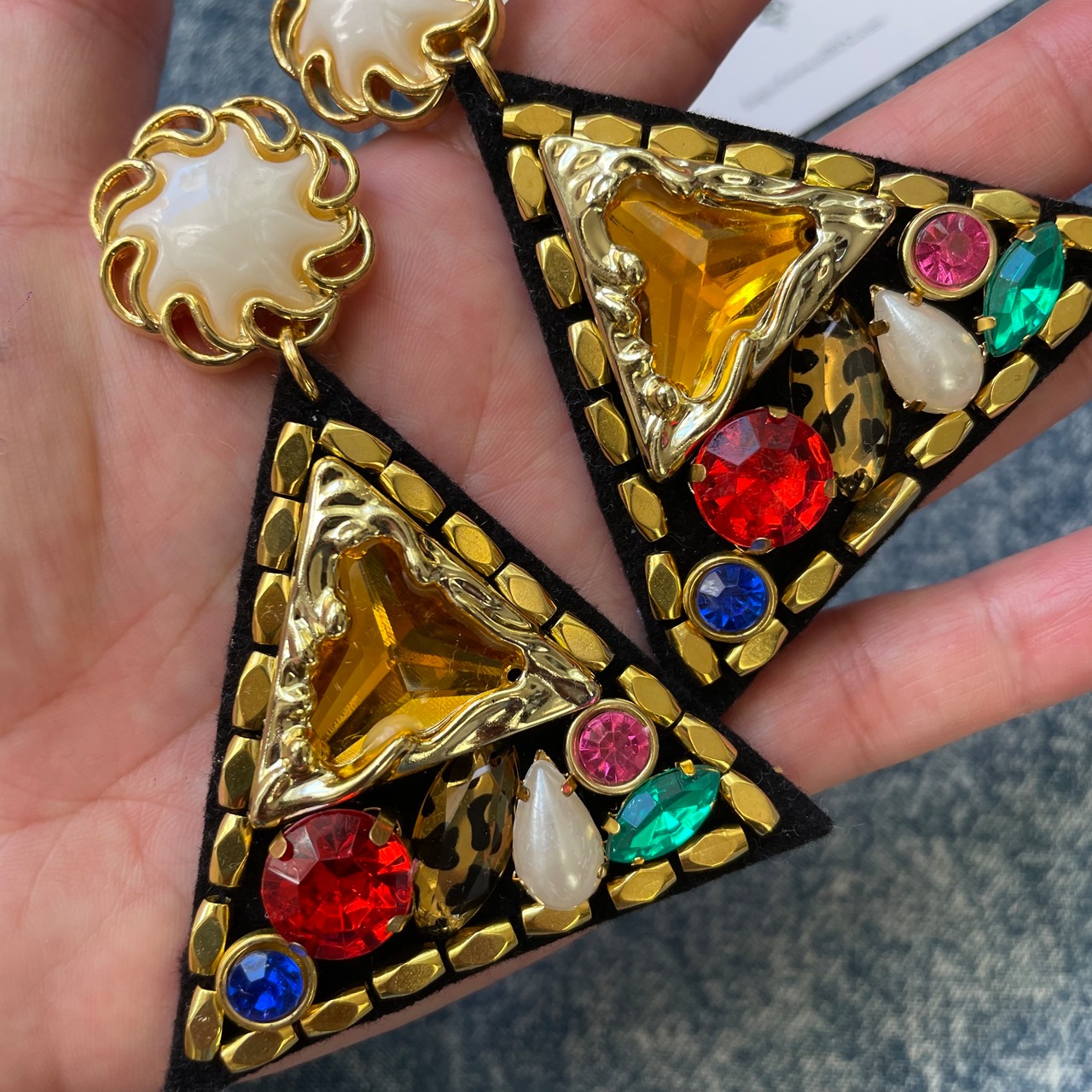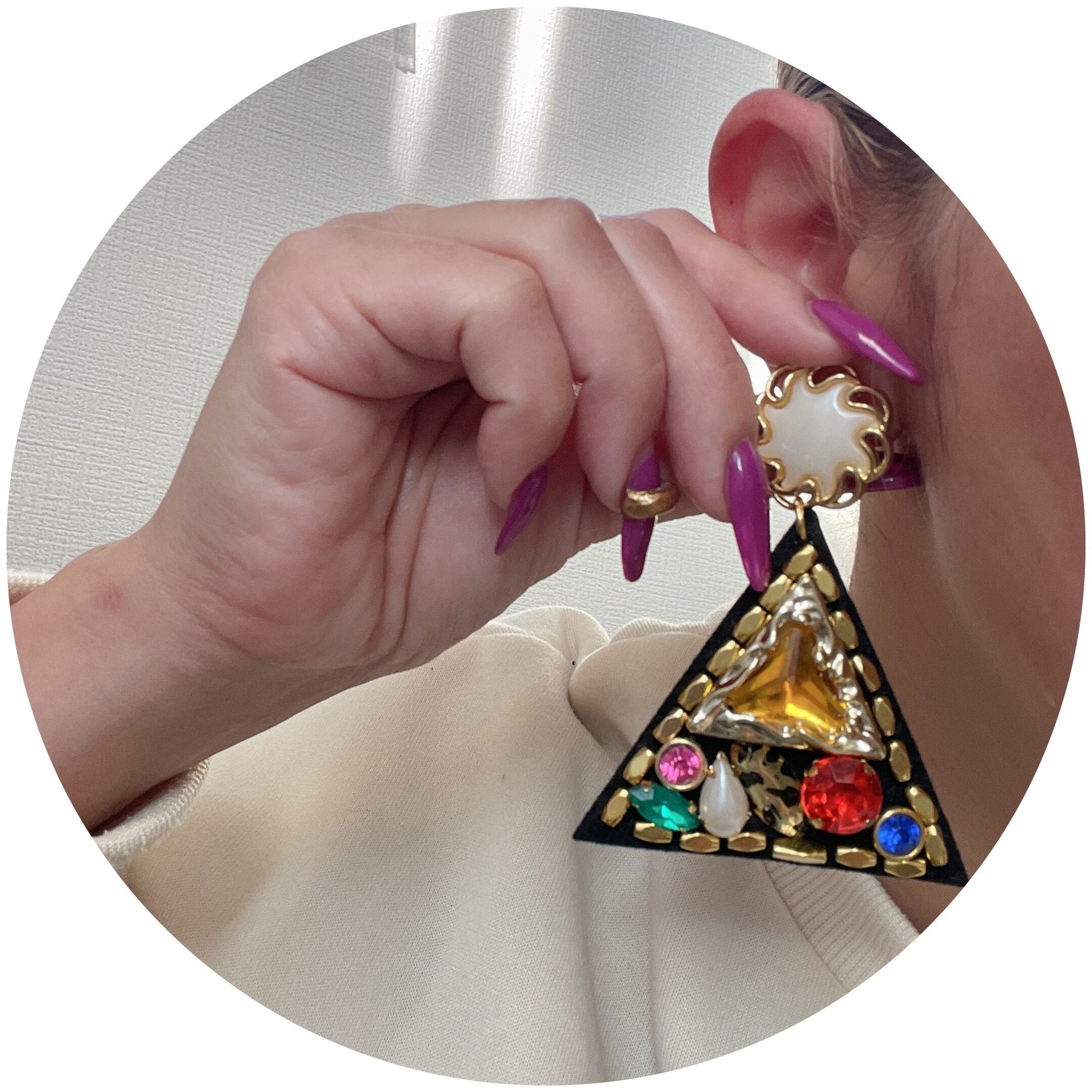 ビジューを詰め込んだギラギラのピアスとなります。