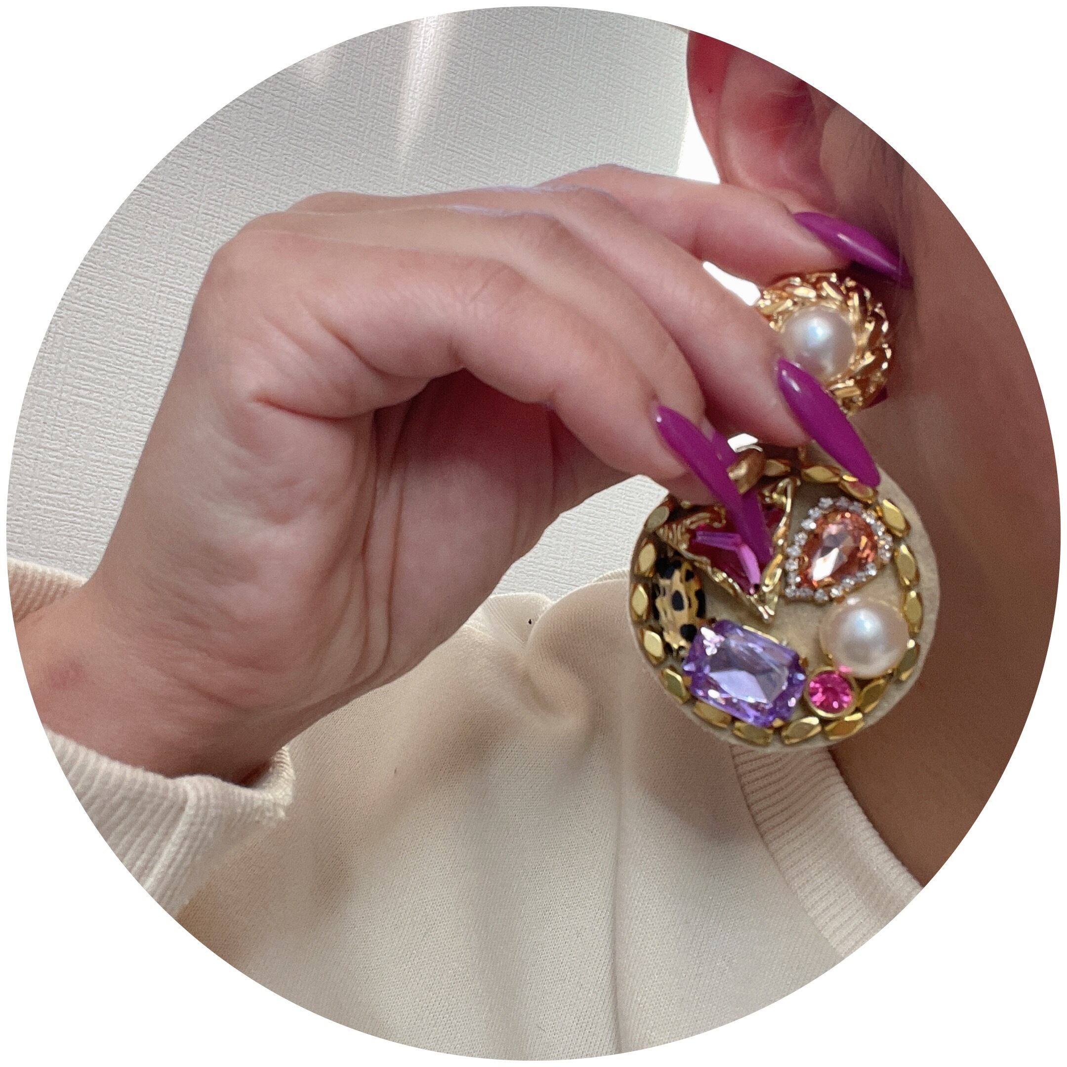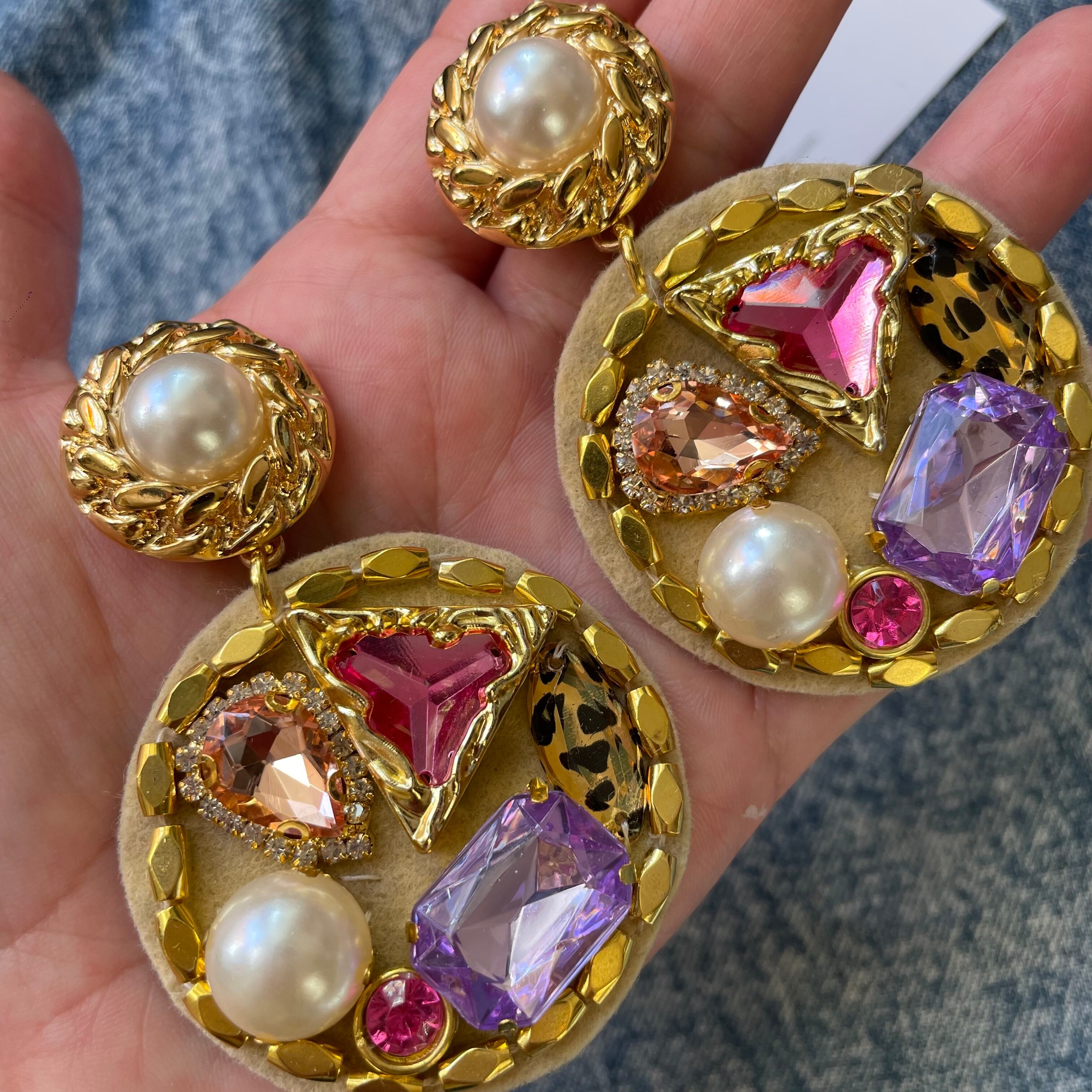 ビジューを詰め込んだギラギラのピアスとなります。