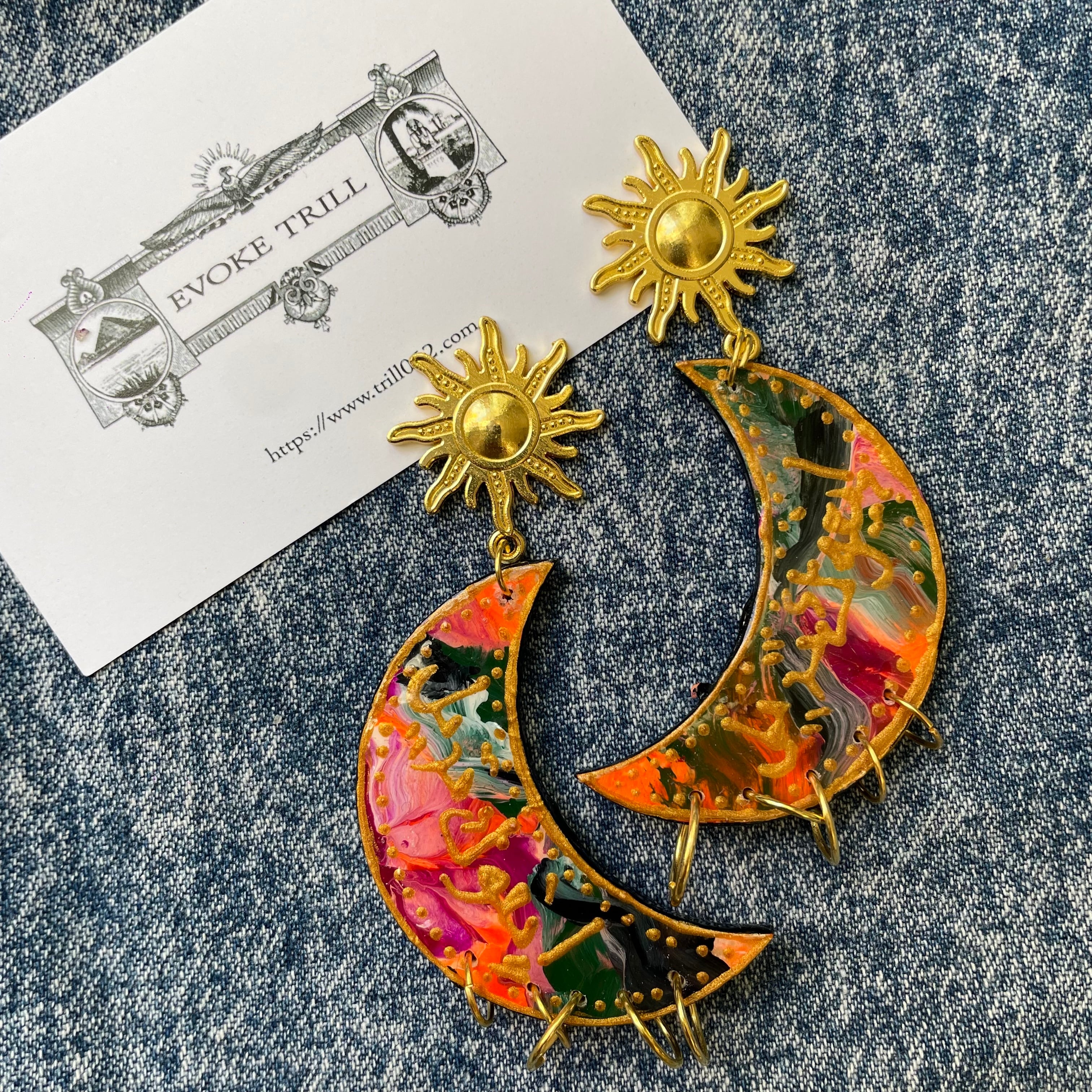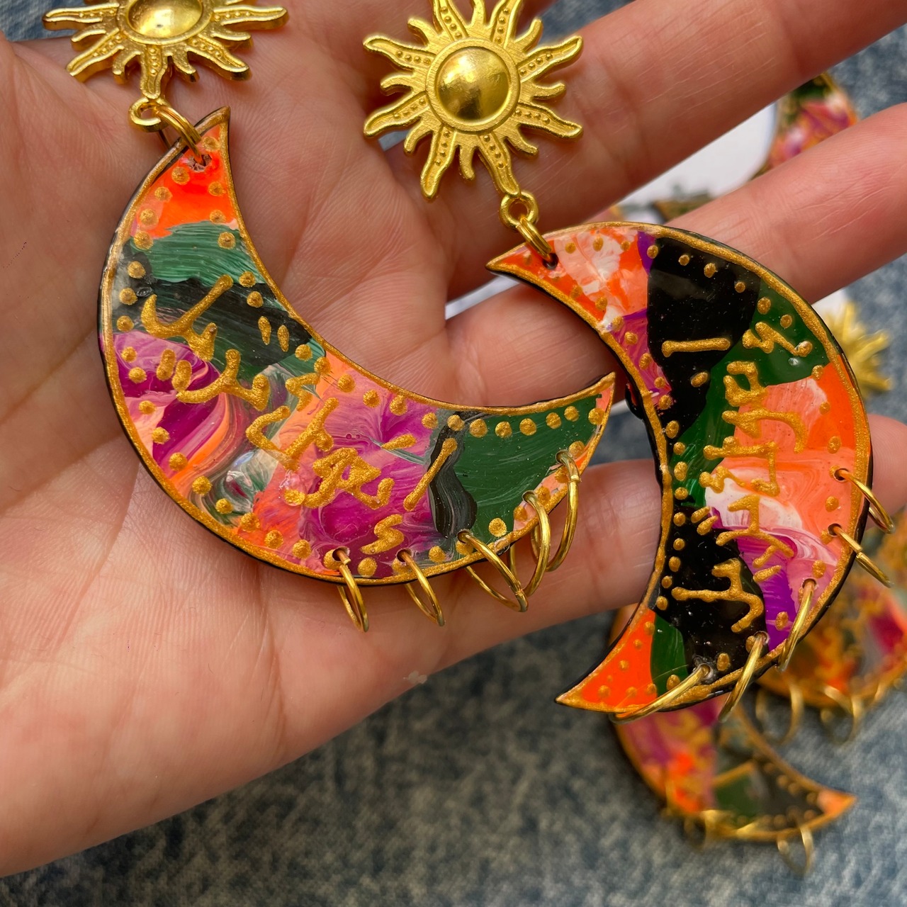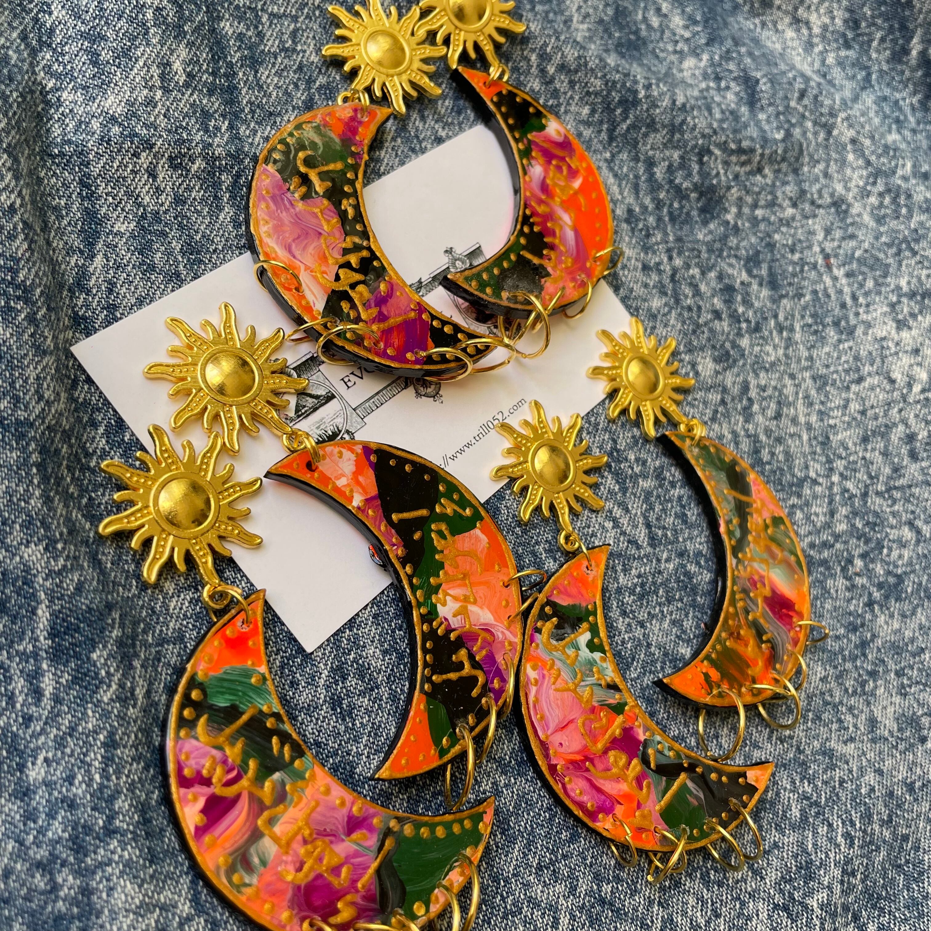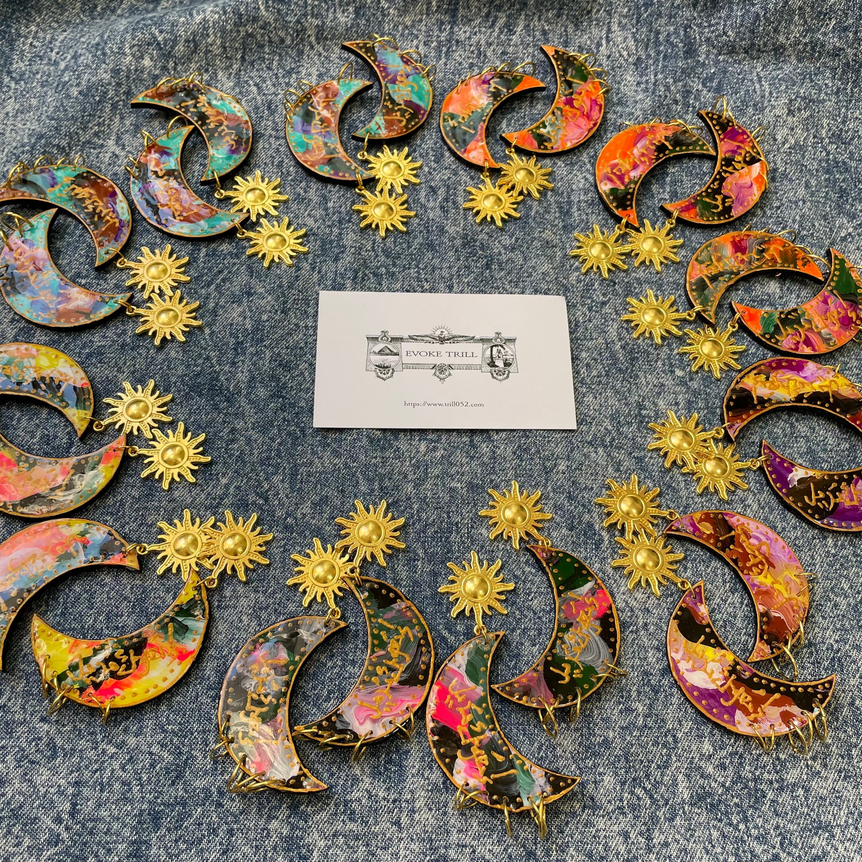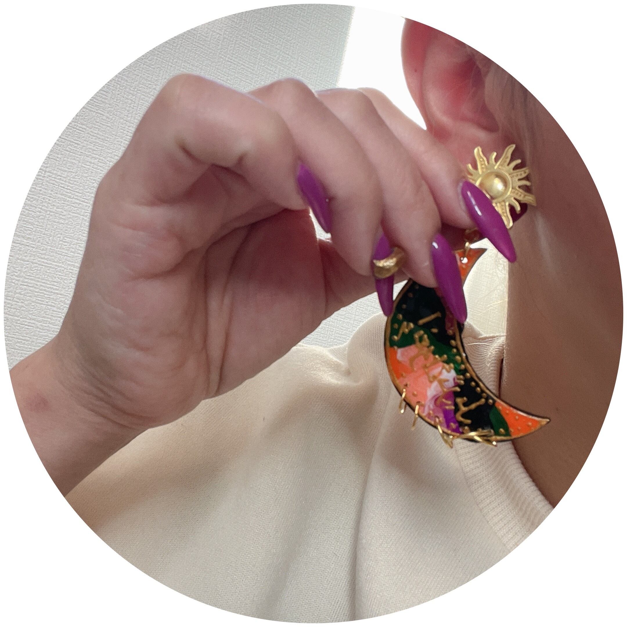 三日月モチーフにペイントしたピアスとなります。