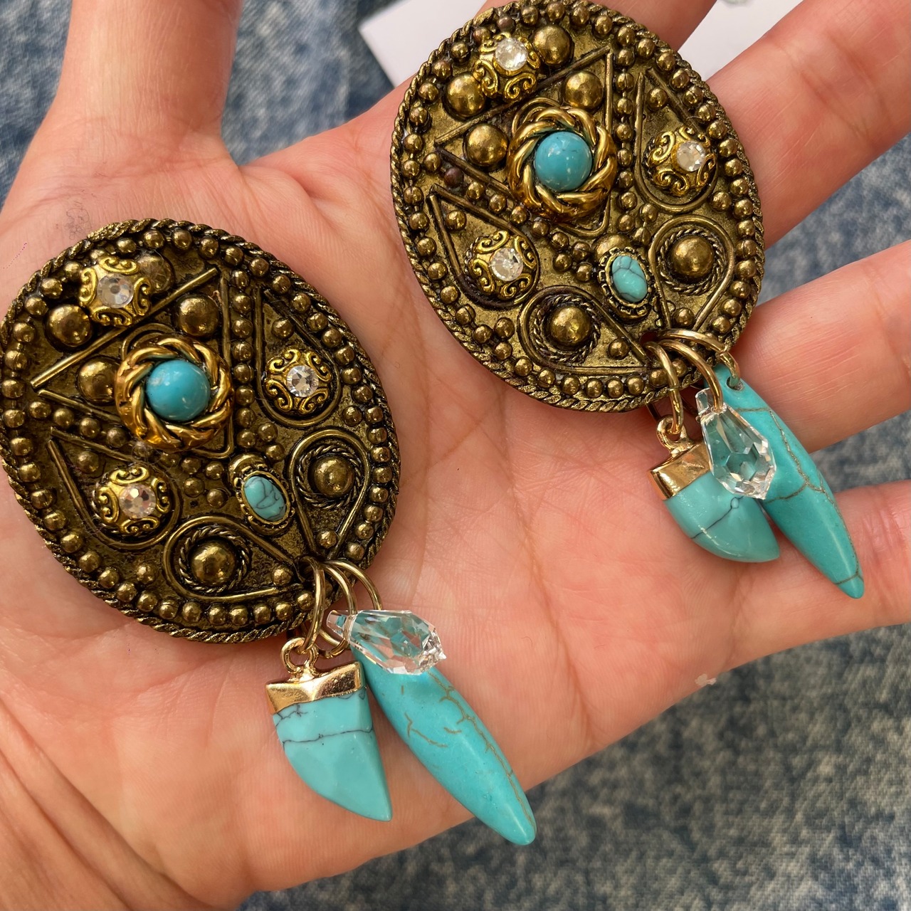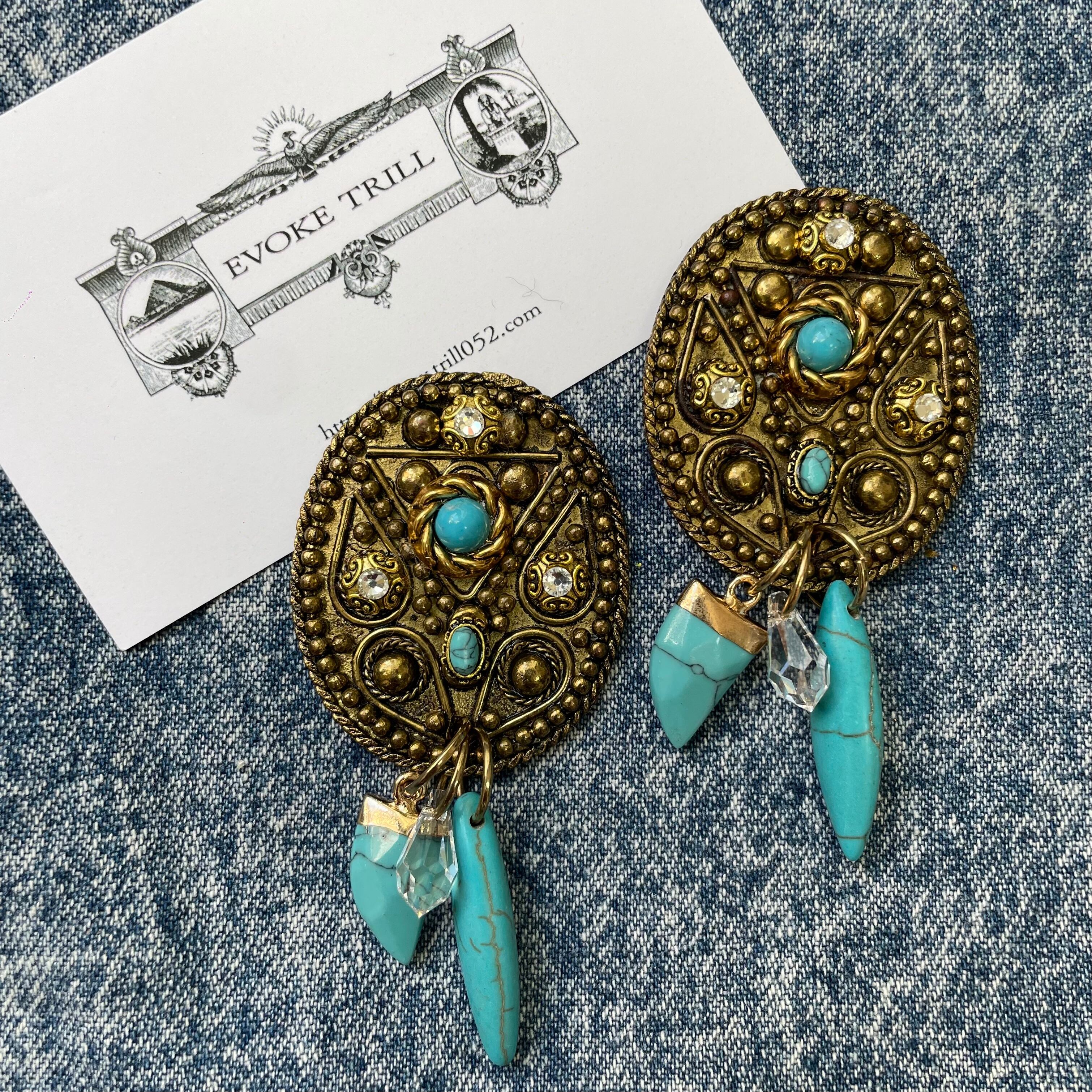 アンティークな色合いのターコイズピアスとなります。