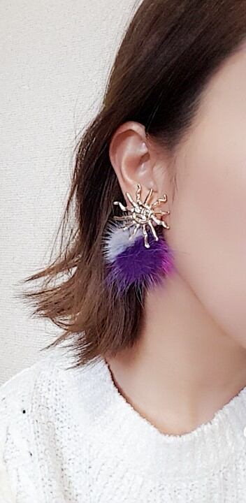 太陽 MIXファー ピアス (B)